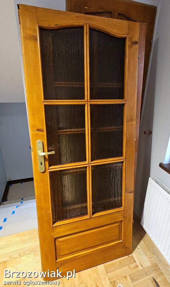 Sprzedam wewnętrzne, drewniane, skrzydła drzwiowe, szer. 80 cm. Pasują do ościeżnic metalowych, 4 sztuki. Stan bardzo dobry. Cena za sztukę 100 zł.