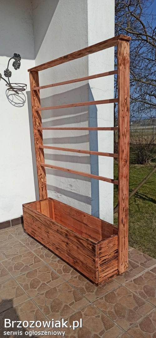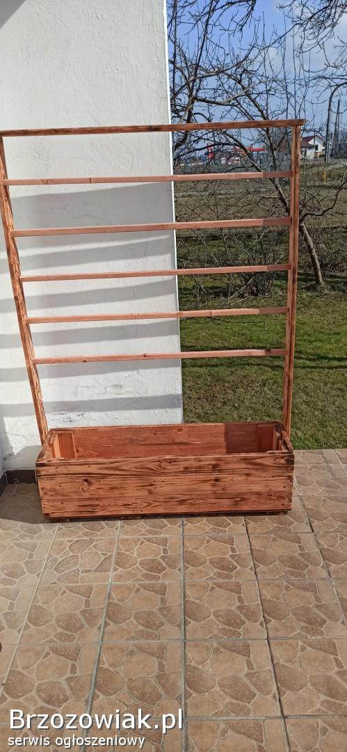 RymanówMam do sprzedania kwietnik Wykonany z desek o grubości 2cm. Calosc jest zainpregnowana i pomalowana bejca koloru dąb. Wymiary: Wysokość 130cm Szerokość 4