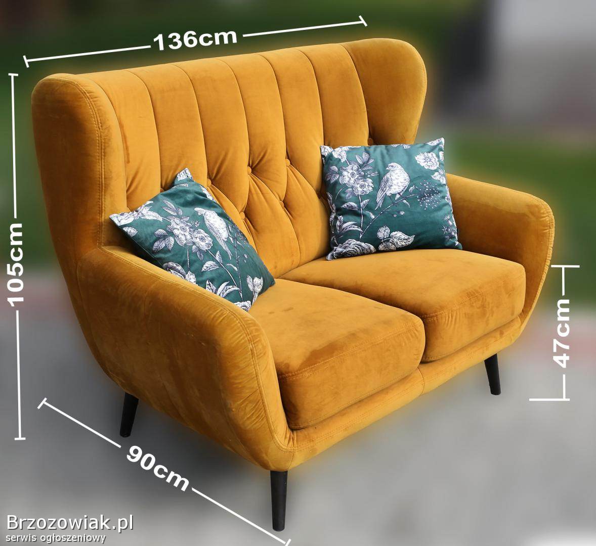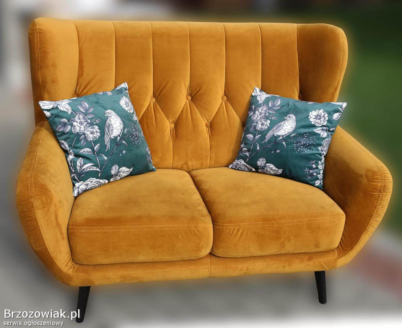 Sofa dwuosobowa z dwiema poduszkami, nowa, nie używana.