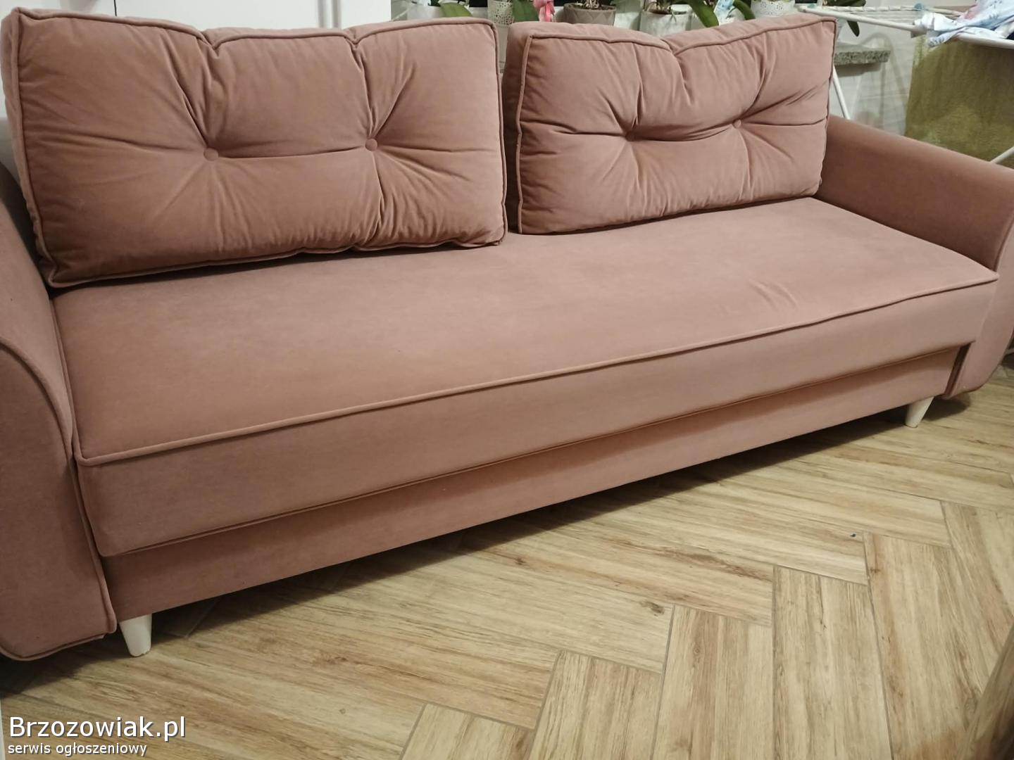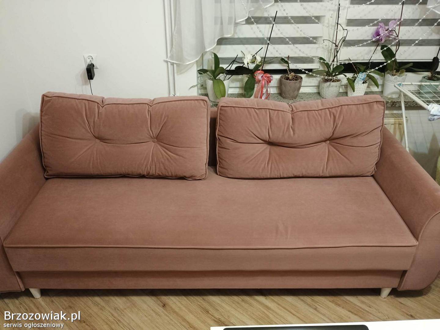 Sprzedam kanapę z funkcją spania. Wymiary przed rozłożeniem 90cmx200cm, po rozłożeniu 150cm/200cm. Kanapa w bardzo dobrym stanie. Materiał: welur, kolor pudrowy ciemny róż. Cena 1000 zł do negocjacji.
