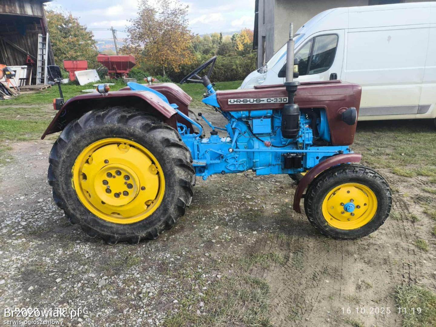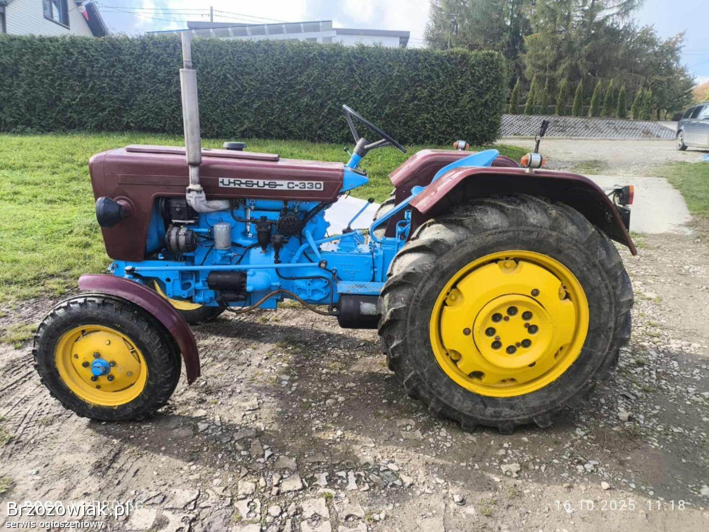 Sprzedam Ursus C-330 rok 1973, wersja eksportowa, ciągnik 2 lata temu po remoncie, silnik, skrzynia, sprzegło, odmalowany, błotniki, maska wypiaskowane wyspawane, pomalowane epoksydem i wewnętrzna strona błotników pomalowana Raptorem w kolorze, ostatnio wymienione drążki kierownicze, olej w skrzyni, i wszystkie przecieki uszczelnione, ciągnik zalany płynem opony tył ok 70, przód 90, , ciągnik używany sporadycznie, dostałem go od dziadka jestem drugim właścicielem, od nowosci na jednym gospodarstwie, teraz więcej stoi niż jeździ szkoda żeby stał, założony alternator, wymieniony ostatnio rozrusznik, ubezpieczenie i przegląd aktualne. Cena jaka mnie interesuje to 27000 do rozsądnej negocjacji. Więcej informacji pod nr tel. 605 526 505