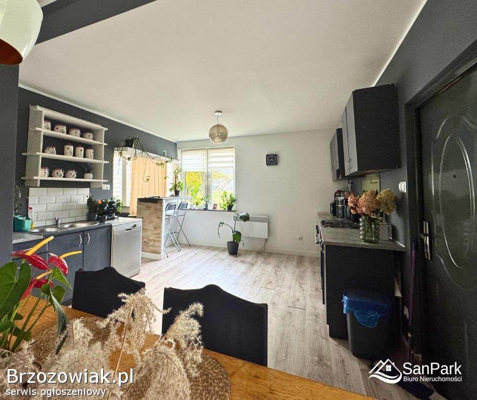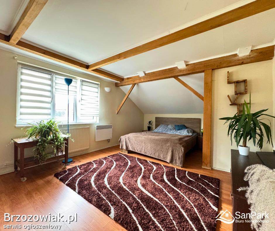 Budynek przeszedł remont zewnętrzny – został ocieplony wełną mineralną oraz styropianem, a dach pokryto blachodachówką. Dodatkowym atutem nieruchomości jest instalacja paneli fotowoltaicznych, która obniża koszty zużycia energii.