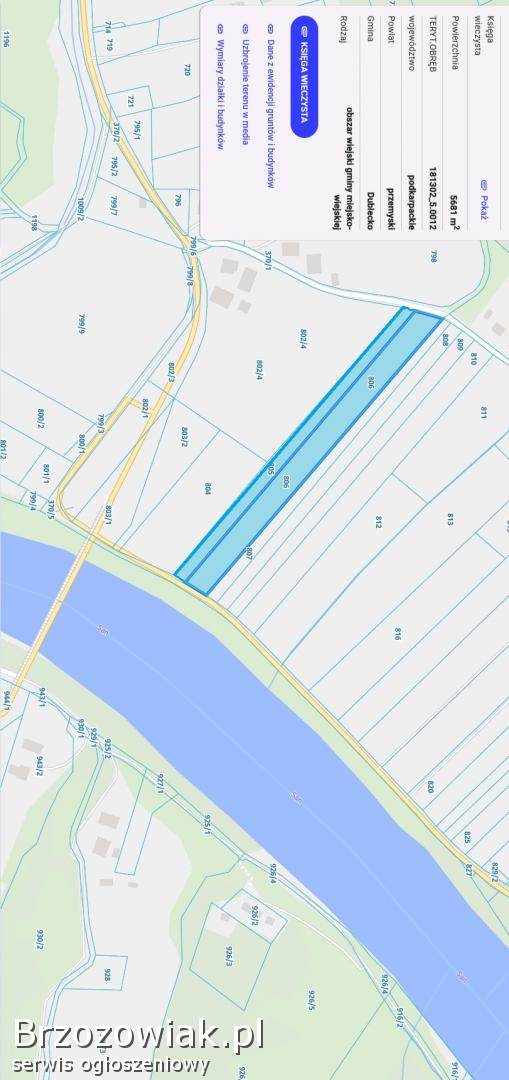 Do działki jest dojazd drogą asfaltową blisko rzeki San.