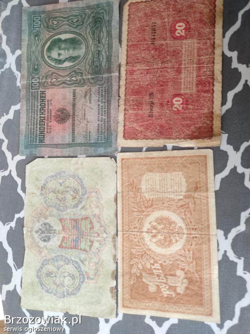 1 rubel z 1898 r. , 3 ruble z 1905 r. , 100 koron austro - wegierskich z 1912 r. , 20 marek polskich z 1919 r.