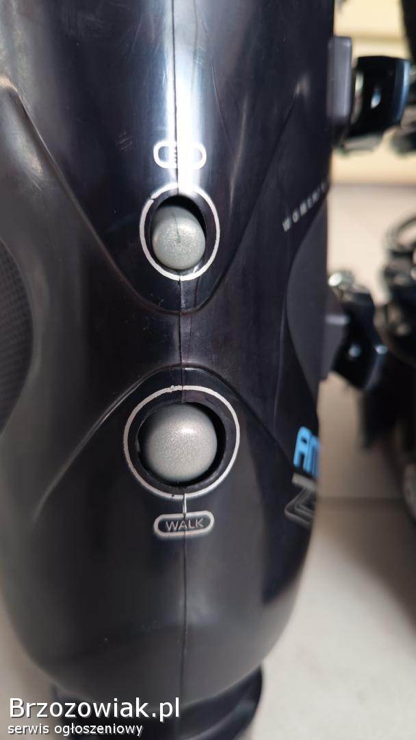 Posiadam do sprzedaży oryginalne włoskiej produkcji buty narciarskie zjazdowe do narciarstwa rekreacyjnego średniego flexu, damskie mało używane w bardzo dobrym stanie wizualnym zewnętrznym i wewnętrznym (wkładka buta termoformowalna). Buty zakupione nowe w sklepie narciarskim i użytkowane wyłącznie przez jedną i tą samą osobę. But wykonany z plastikowej skorupy, posiada 4 klamry z mikroregulacją oraz pasek power strap na gilzę (górnej części buta).