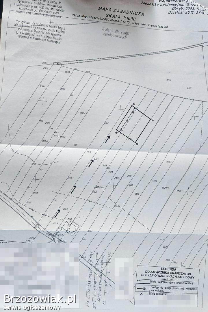 HumniskaSprzedam działkę budowlaną 12a nr 6073/4 Wydane warunkami zabudowy na dom jednorodzinny oraz na garaż Dojazd drogą gminną a następnie ok 200m drogą utwardzo