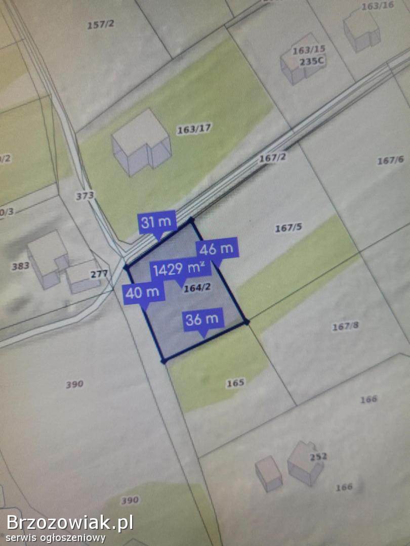 Sprzedam działkę budowlaną nr 164/2 w miejscowości Twierdza gm. Frysztak o powierzchni 0. 1442 ha z warunkami zabudowy budynku mieszkalnego jednorodzinnego, położona przy drodze asfaltowej, 2 km od Frysztaka. Bardzo spokojna okolica
