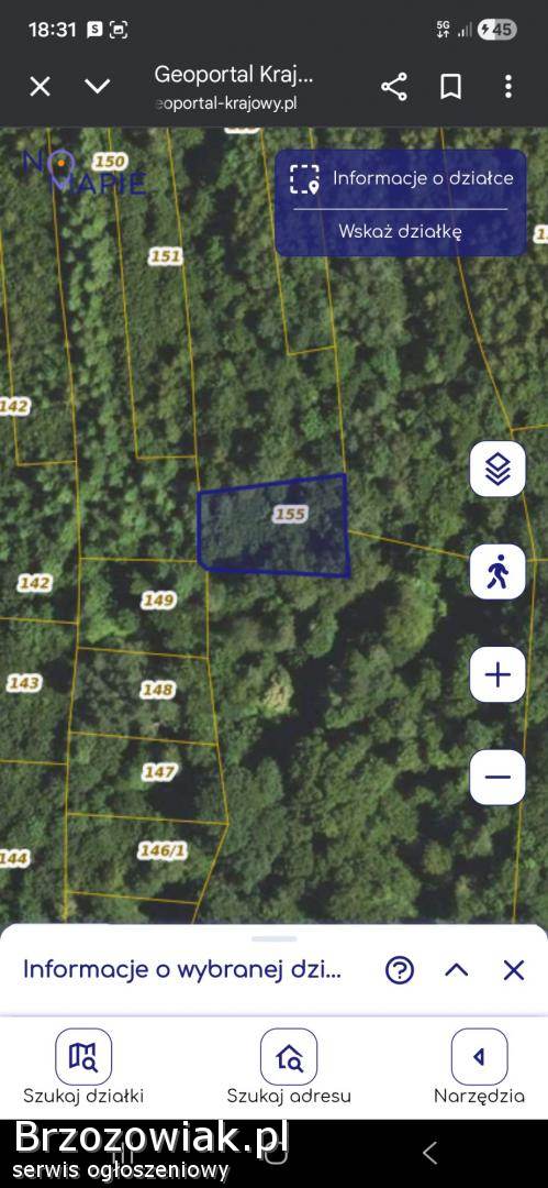 155 pow. 0. 09 Cena wyjściowa 600 zl za ar