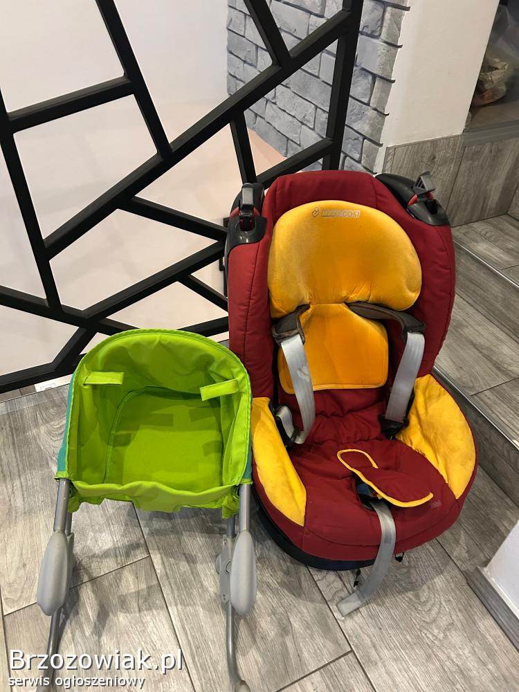 Sprzedam fotelik samochodowy bezwypadkowy po jednym dziecku. Fotelik montowany pasem samochodowym. Gratis dokładam fotelik turystyczny.