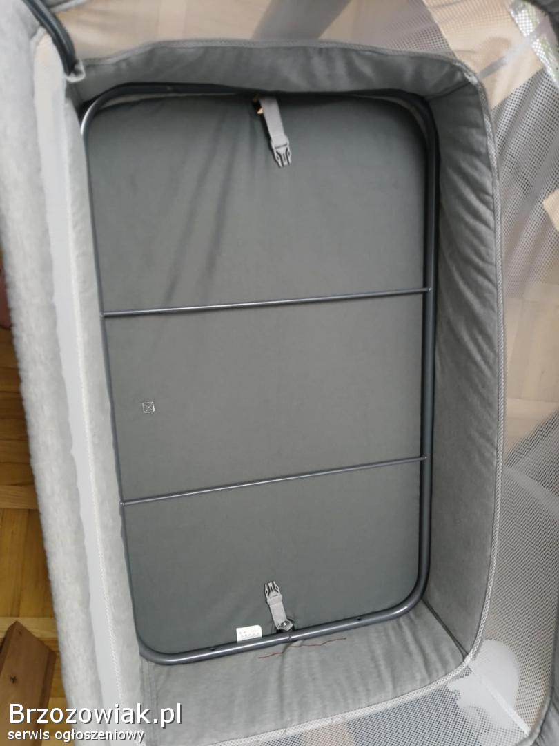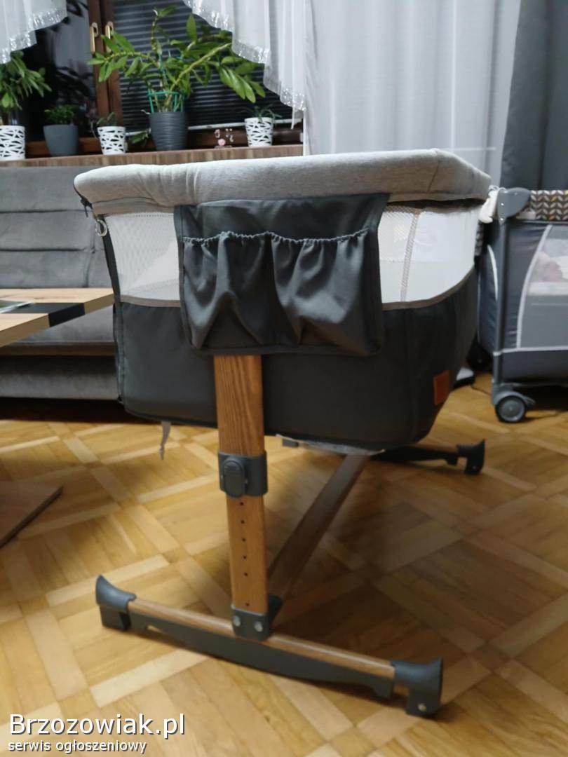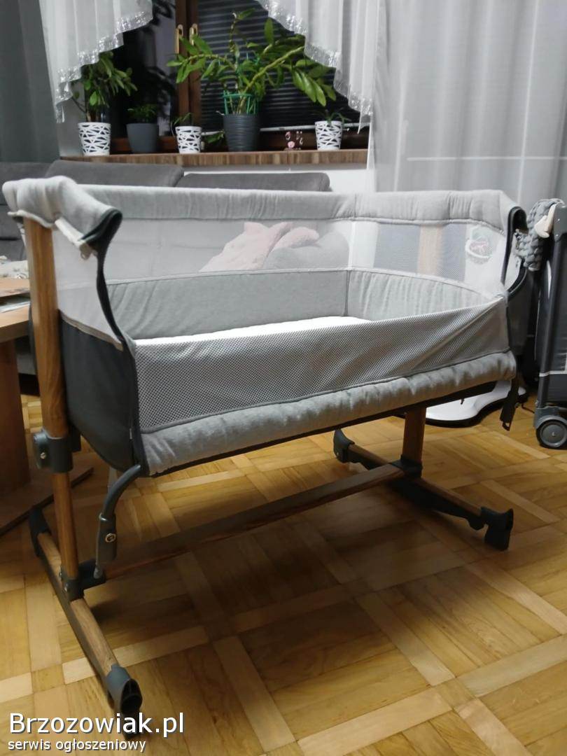 Posiada regulowane boki, zapięcia do łóżka, kółka, a także można z niej zrobić kołyskę. Używana pół roku. Wady pokazane są na zdjęciach. Nie przeszkadzają w użytkowaniu. Wyprana.