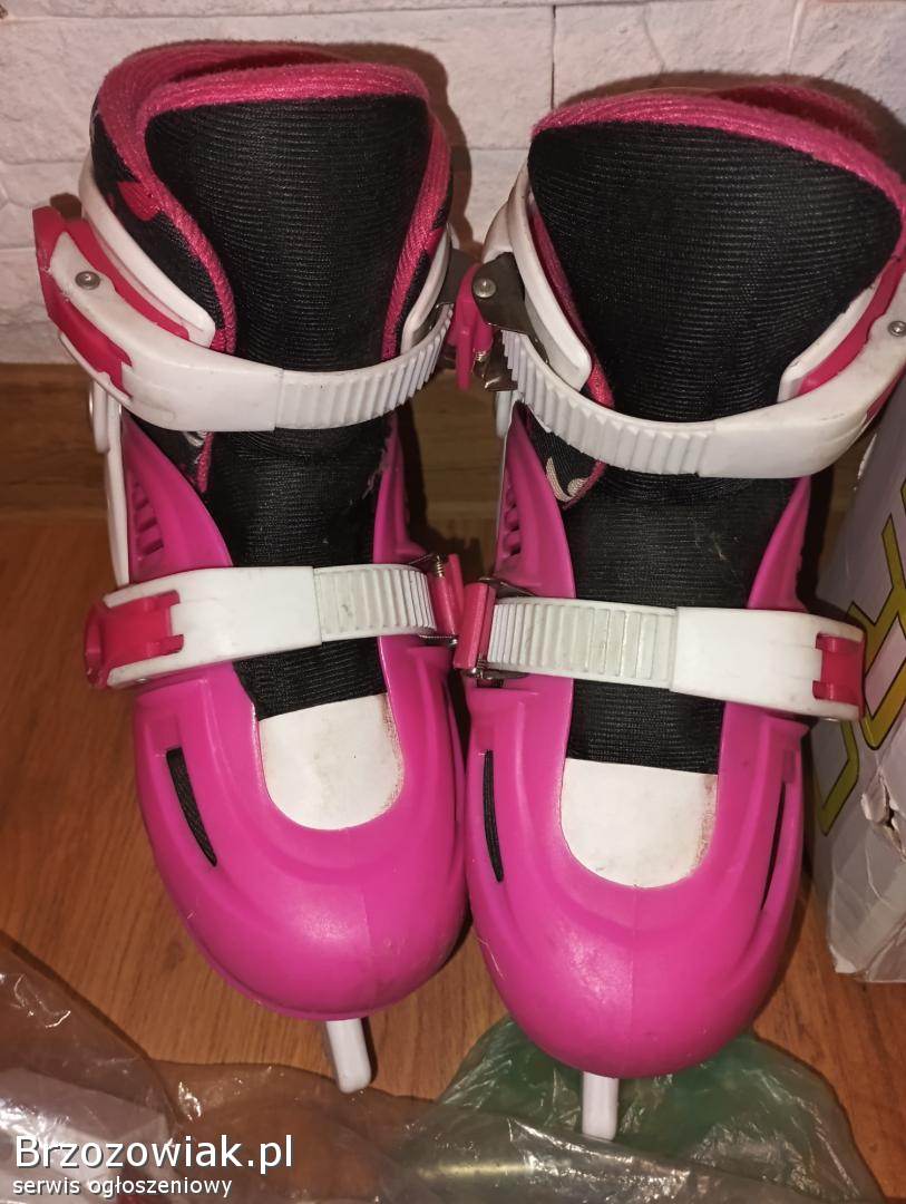 Sprzedam łyżworolki 4 w 1. Rozmiar regulowany 31-34. Wszystko kompletne wraz z kluczami do zmiany płozy i pudełkiem. Stan bdb