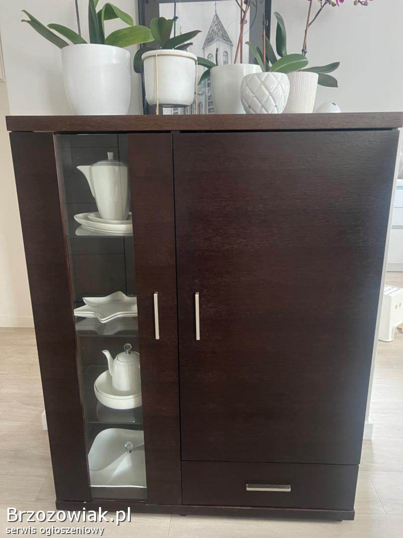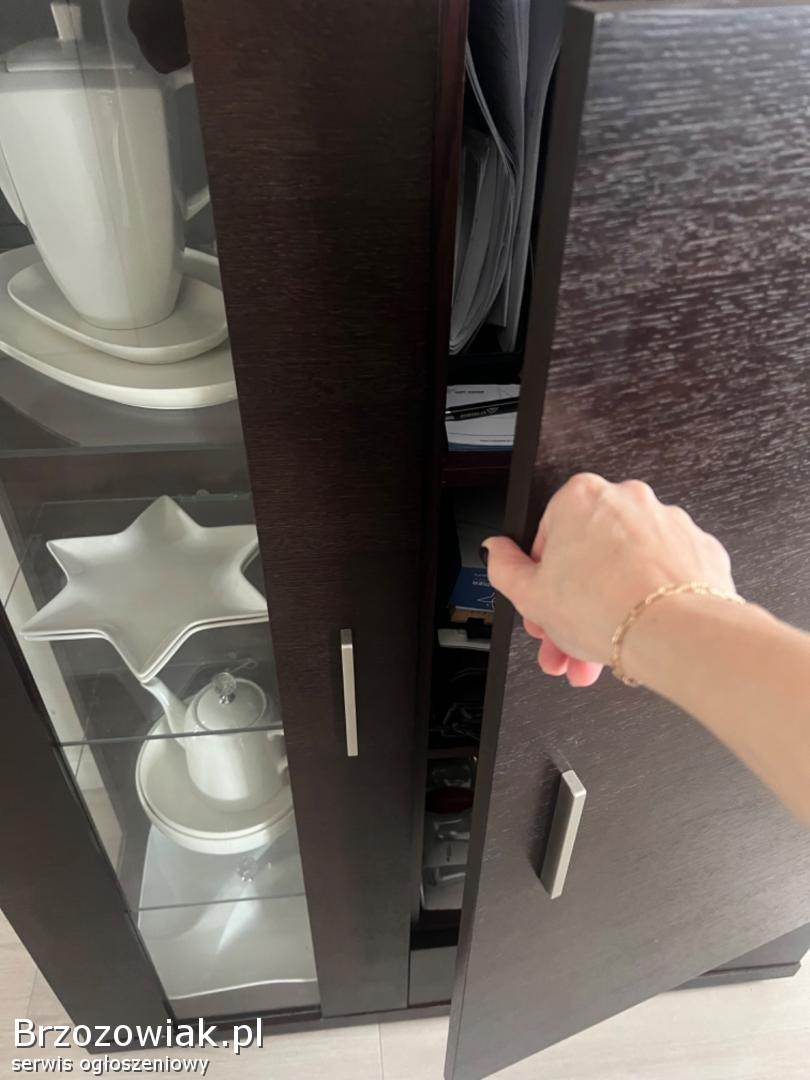 Sprzedam szafkę RTV i witryne, kolor brąz ciemny, stan bardzo dobry, naturalna okleina, odbiór w Lutczy. Wymiary na zdjęciu.