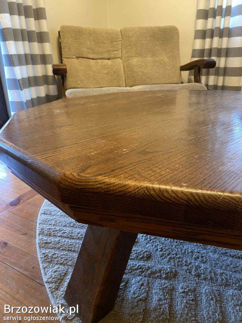 Meble wykonane z litego drewna, stabilne. Stan do lekkiego odświeżenia.