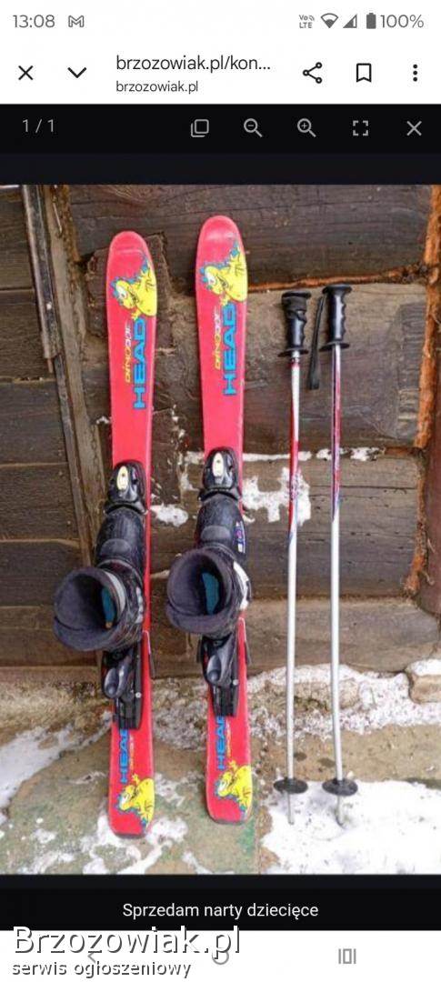 Sprzedam zestaw dla dziecka nr buta 32-33 kijki 95 cm, nart 105. Cena 200 zł.