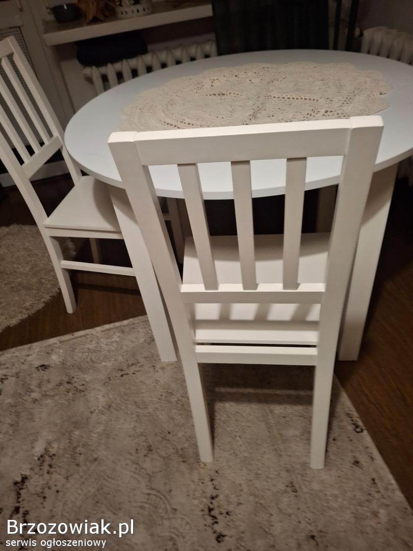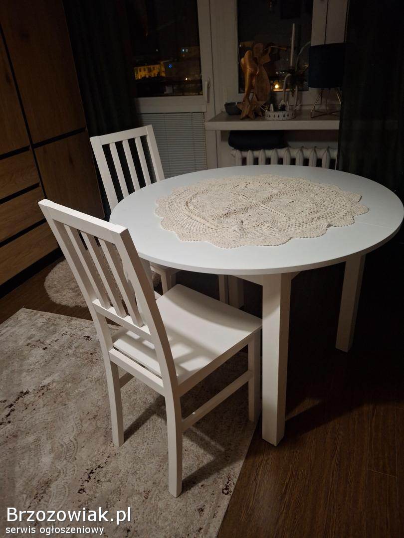 Stół biały, okrągły z funkcją rozłożenia. I dwa krzesła biale. Więcej informacji pod nr tel. 609203369