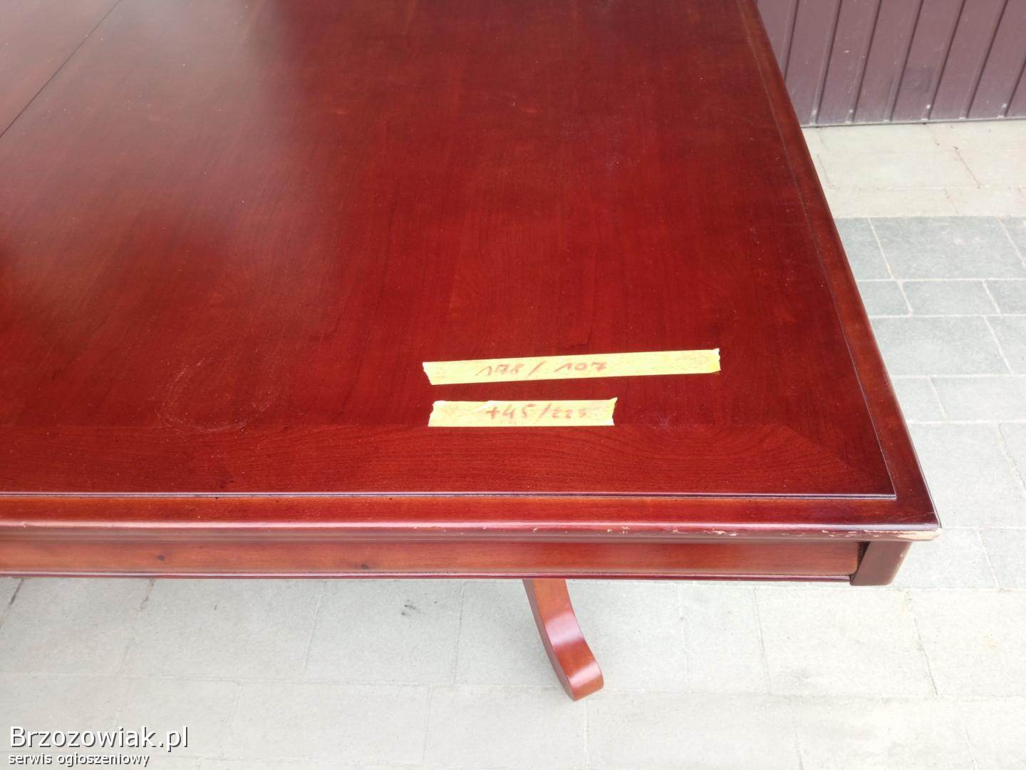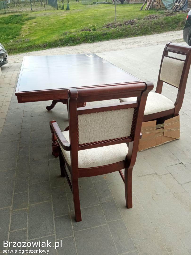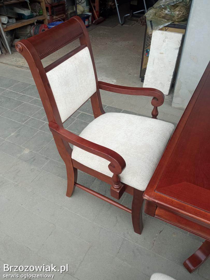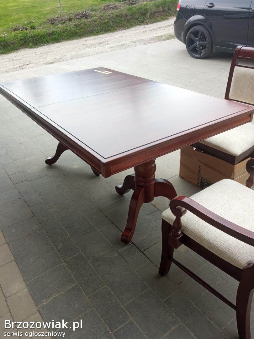 Sprzedam zestaw stół z krzesłami o wymiarach 178dlugi 107 szeroki plus wstawka w środek 45 cm co daje po rozłożeniu 230 cm krzesła 6 szt normalnie plus dwa tzk trony stan bardzo dobry wykonanie czereśnia czy wiśnia zapraszam do obejrzenia