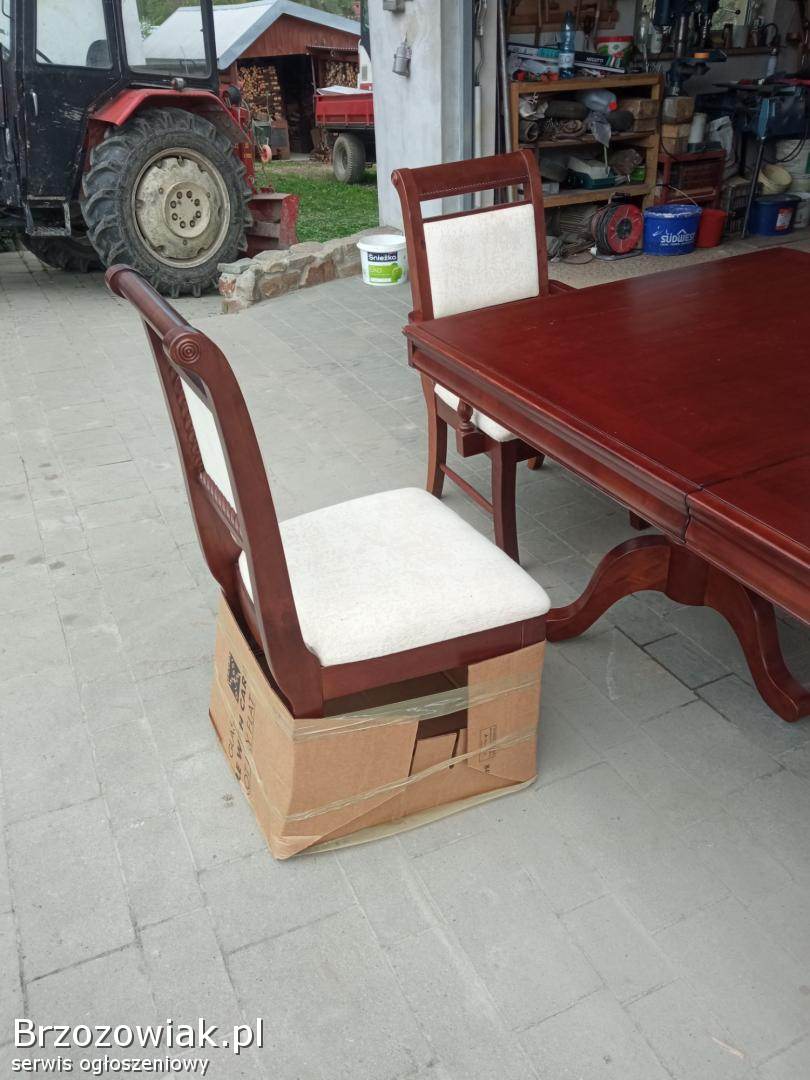 PrzysietnicaSprzedam stół wraz z krzesłami zestaw ośmioosobowy dwa trony i sześć krzeseł całość ma być z drzewa czereśniowego stan bardzo dobry stół wymiary 178dl szer 106