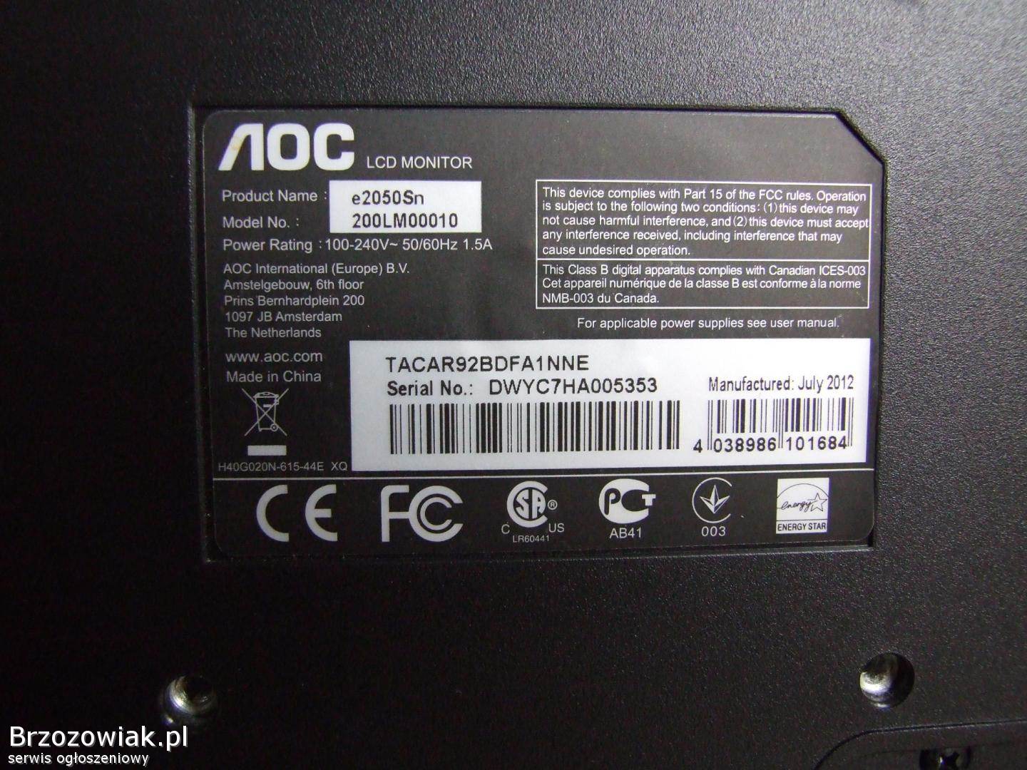 Sprzedam używany monitor AOC e2050Sn LCD LED 20 z kablami