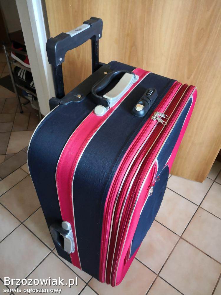 Walizka na kółkach z wysowaną rączką w stanie bardzo dobrym Wymiary 80-50-30 Możliwość poszerzenia o kilka cm