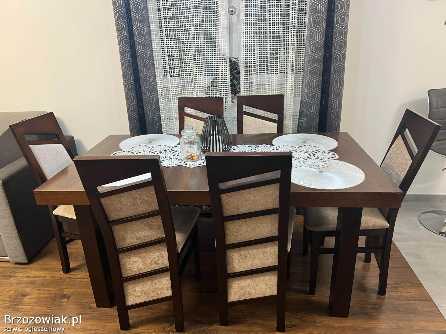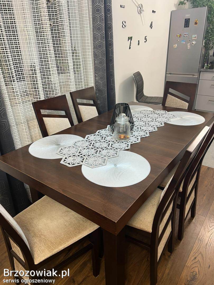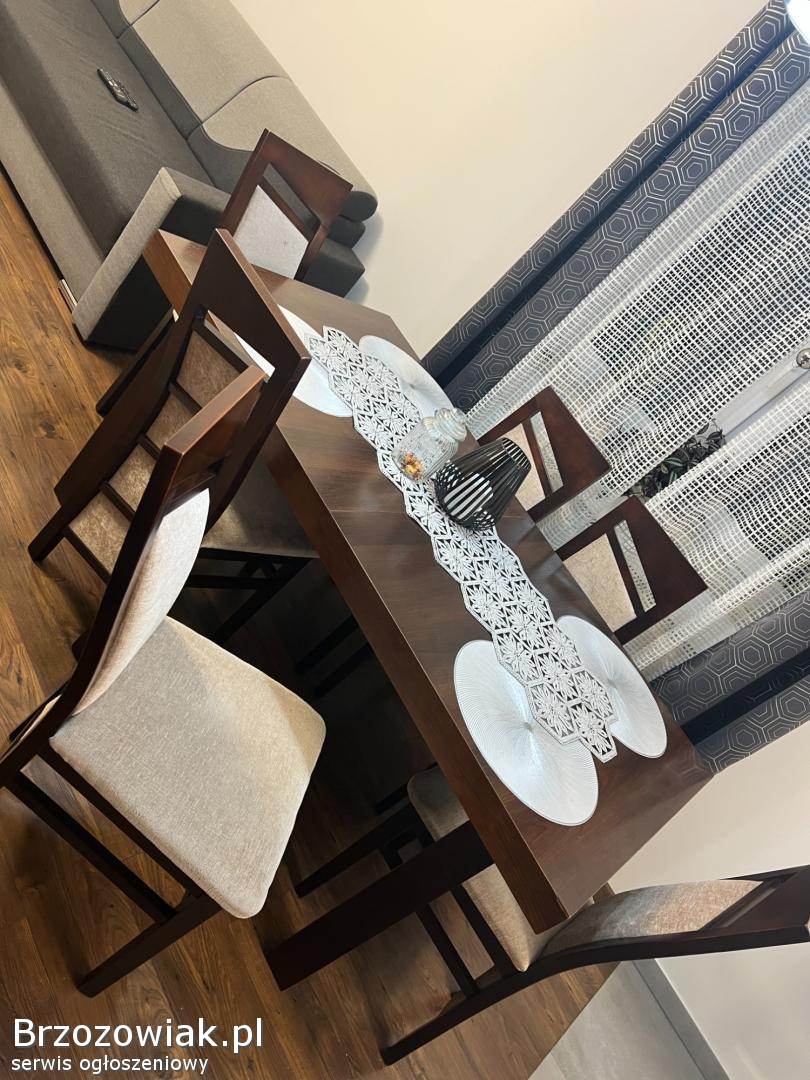 Sprzedam zestaw stół wraz z krzesłami w ilości sztuk 6, stan widoczny na zdjęciach, krzesła zarówno jak i podstawa wykonane są z drzewa dębowego natomiast blat z płyty. Więcej informacji pod telefonem 6x0x7x1x3x2x2x2x3. Cena 1250 zł do lekkiej negocjacji.
