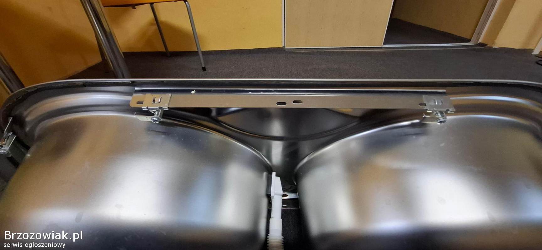 Używany, dwukomorowy zlew kuchenny marki Franke. Wykonany ze stali nierdzewnej, odporny na uszkodzenia i łatwy w utrzymaniu czystości. Idealny do nowoczesnej kuchni. W komplecie oryginalne korki i zaczepy do blatu.