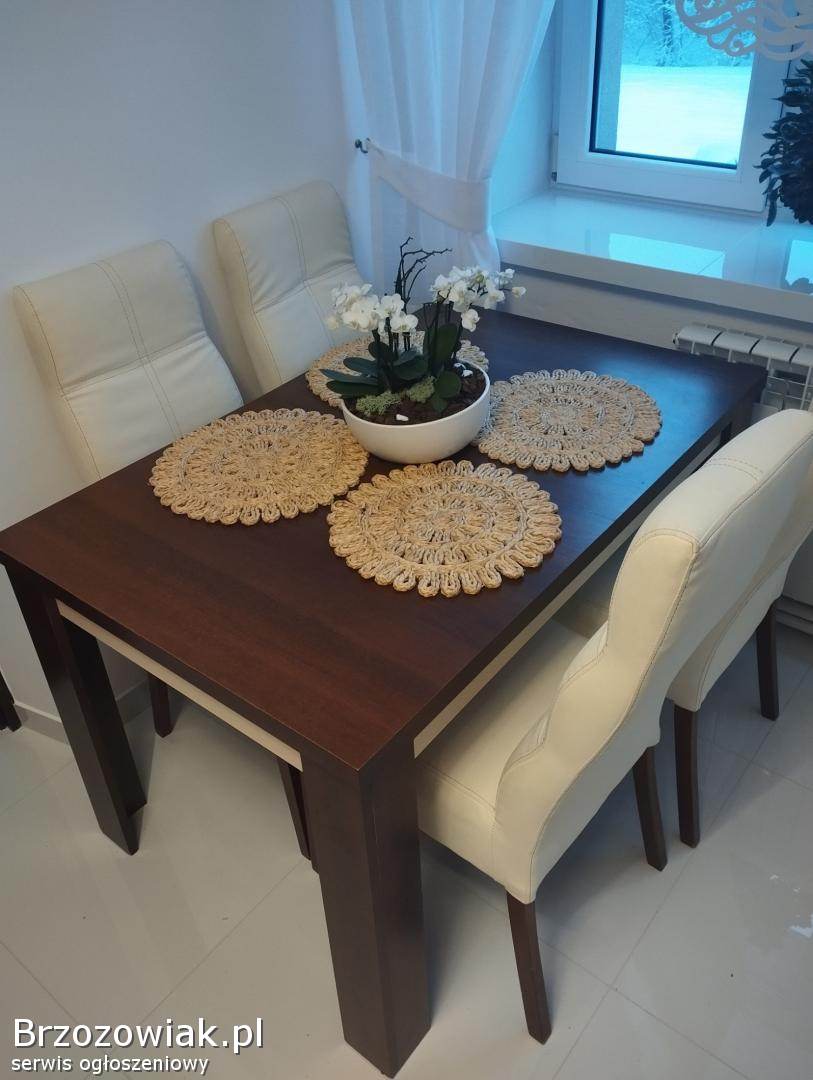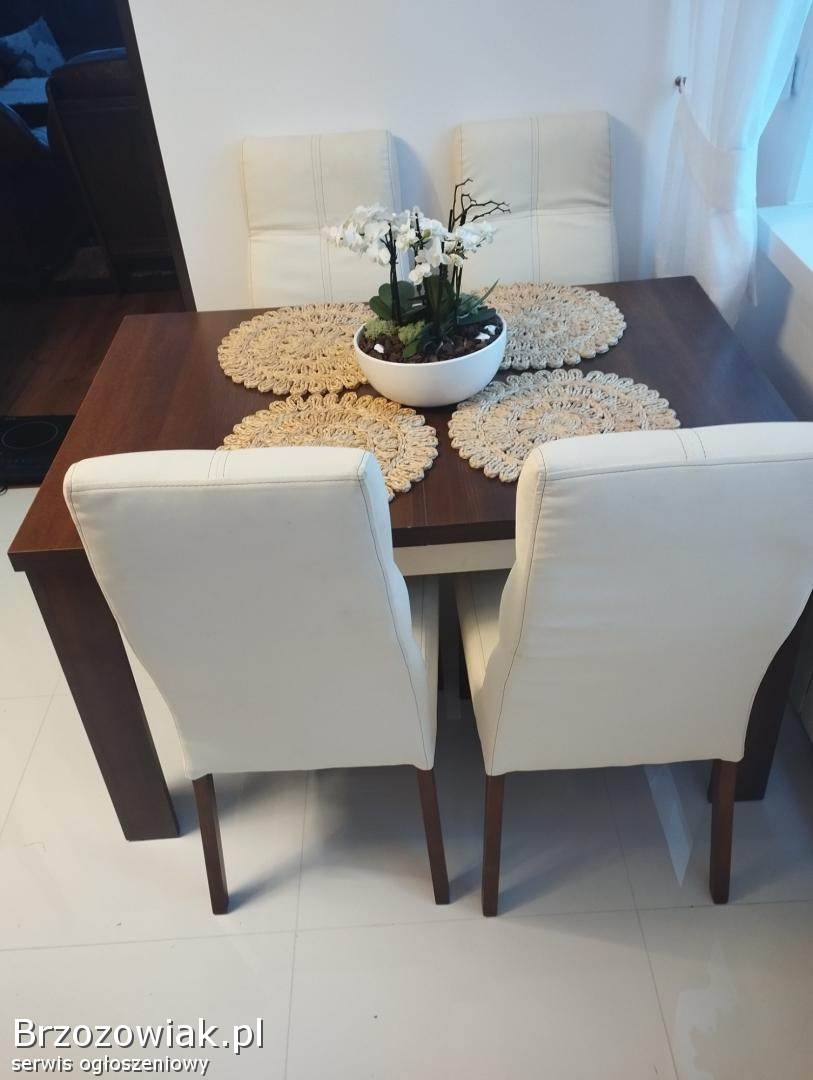Stół z jadalni + 4 krzesła bardzo solidne w idealnym stanie, po nowym obiciu!