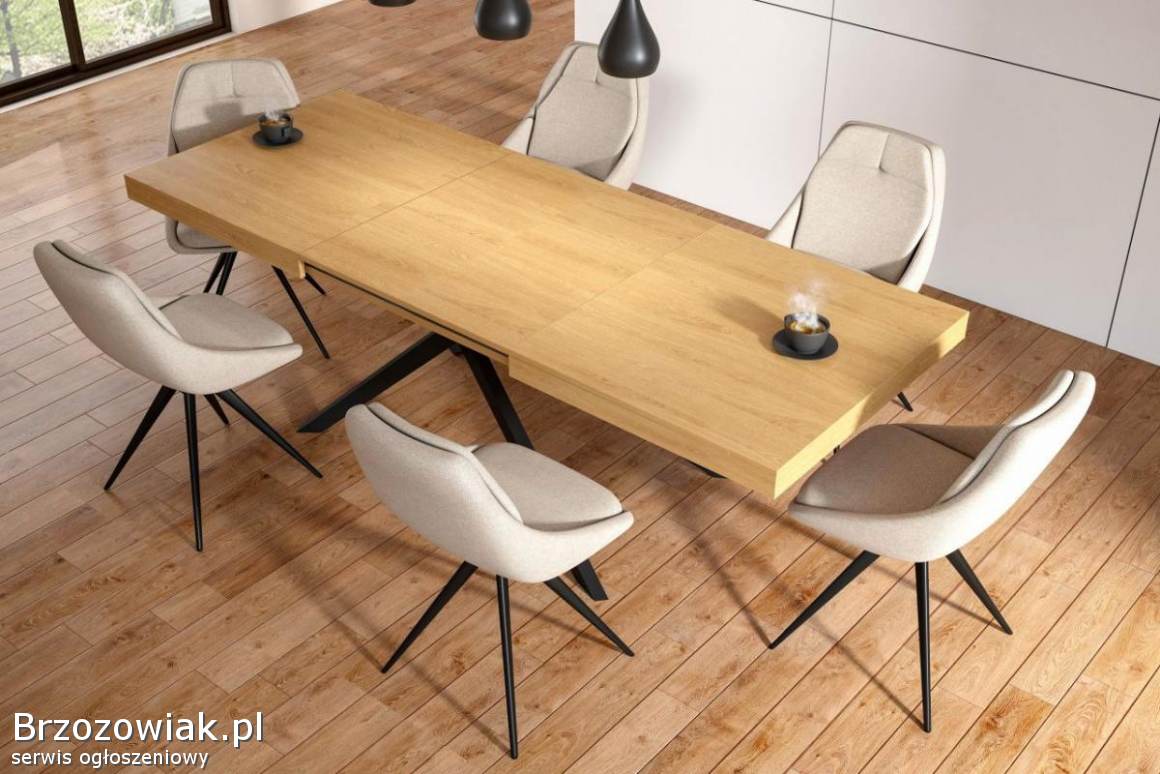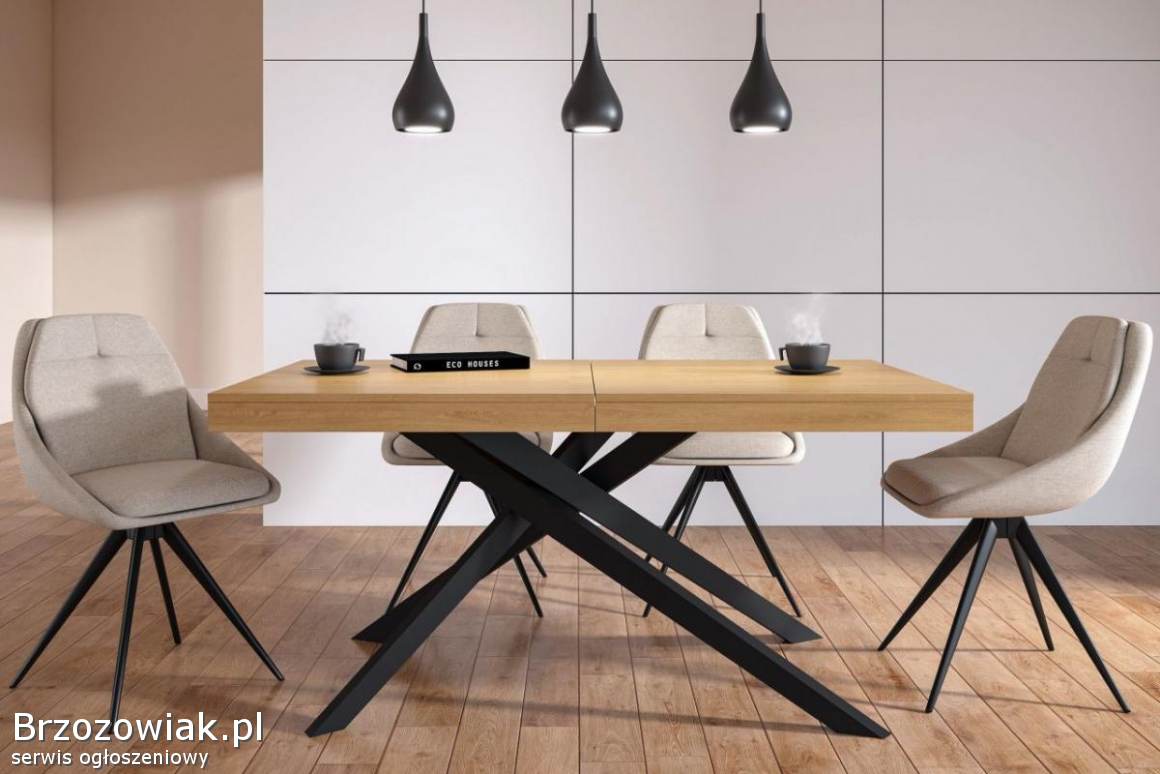 Stół rozkładany do salonu LOFTOWY pająk - blat w kolorze dąb naturalny.