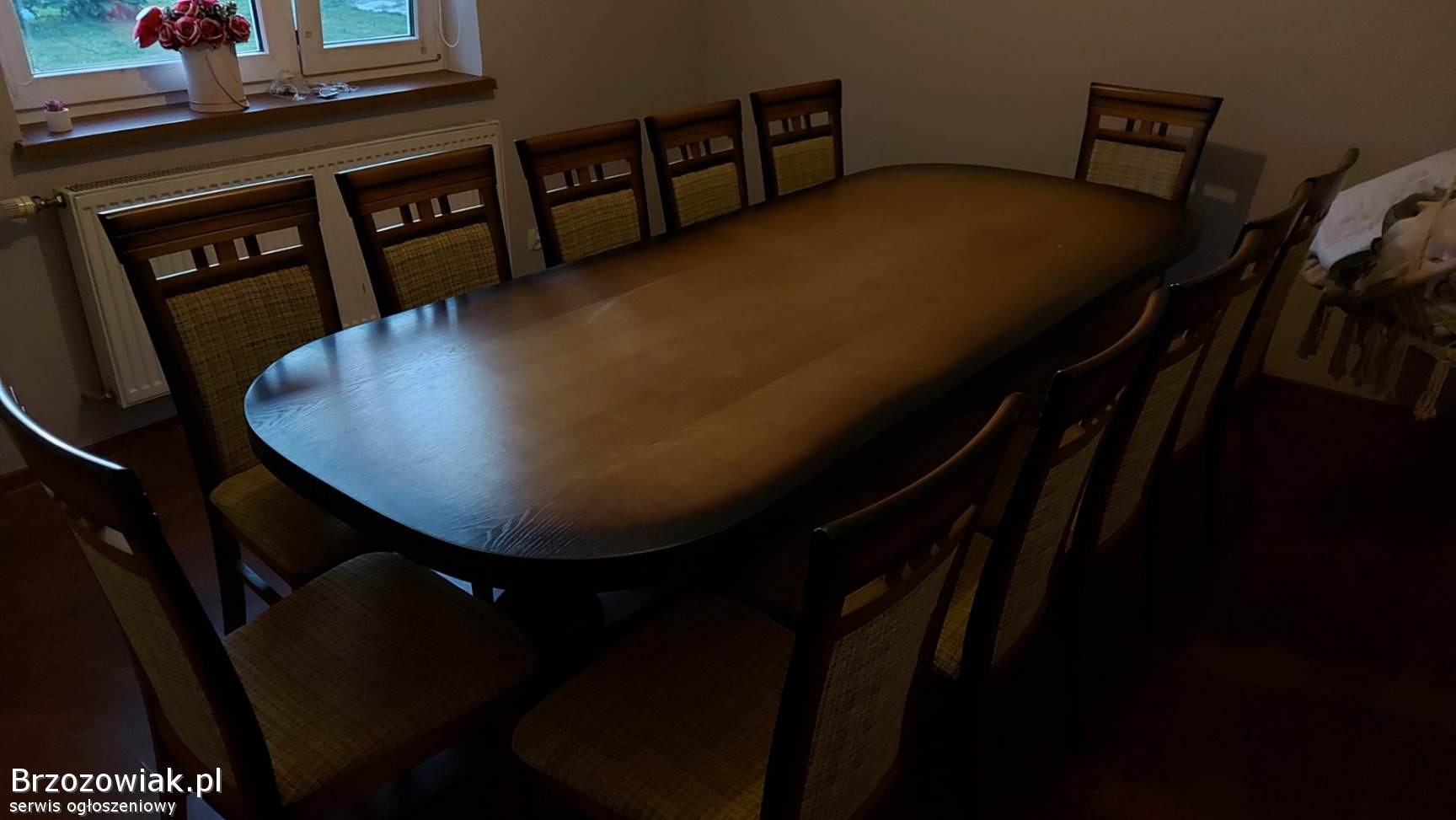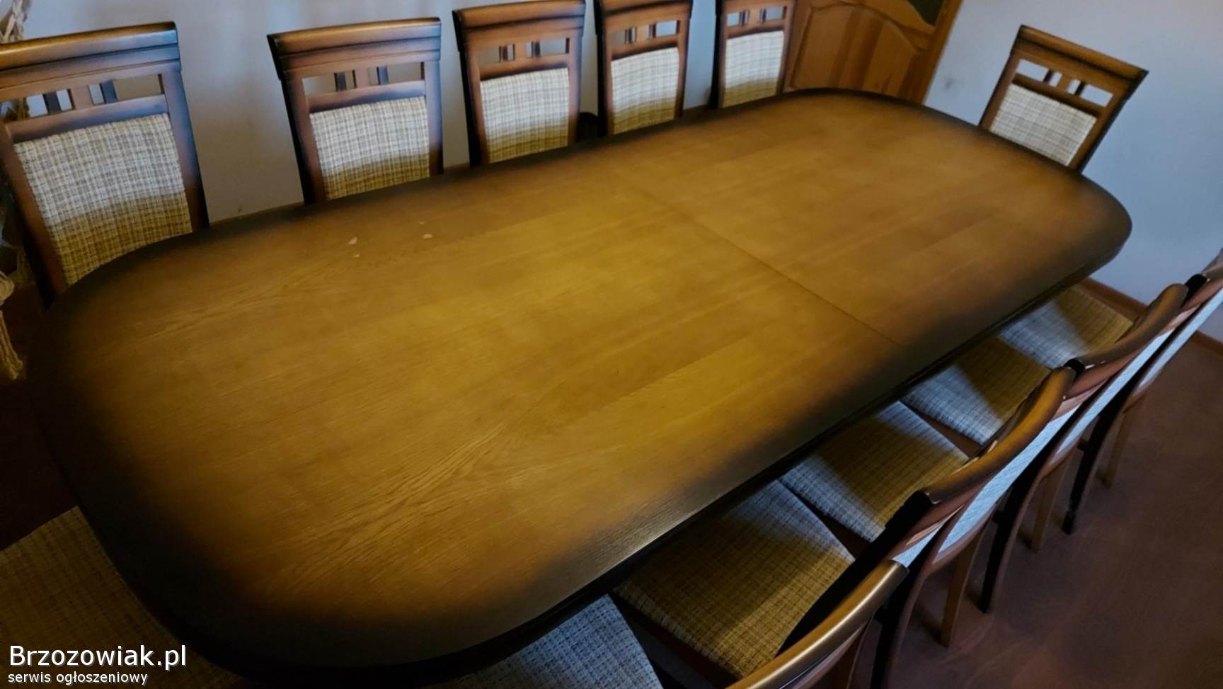 Sprzedam duzy solidny stół drewniany z krzesłami 12 szt