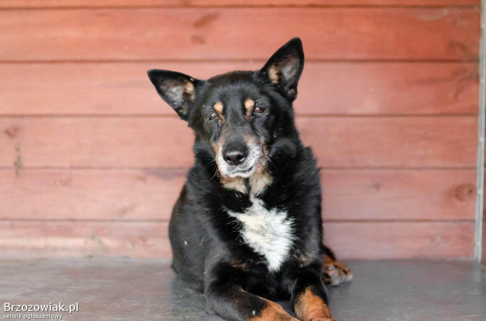 Sucharek to spokojny, starszy pies, który ma około 9 lat.