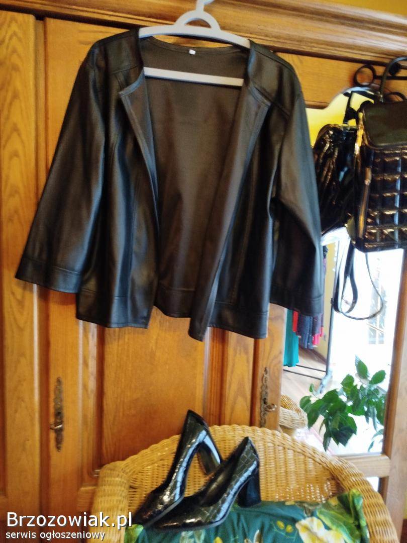 WęglówkaZestaw składa się z jeansów 46 - 48 elastyczne, sukienki niebieskiej we wzory, bluzki, żakieciku na zamek, sandałki 39 granatowe, wysokie czółenka skórzane ażur