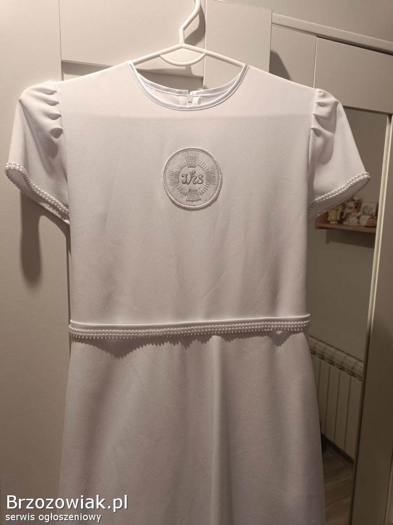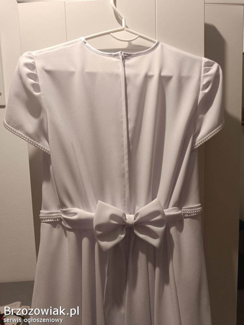 Sprzedam sukienkę komunijną z torebką i bolerkiem na wysoką szczupłą dziewczynkę. Wymiary na płasko szer w ramionach 32cm szer w pasie 32 wysokość całkowita 130cm. Cena 100 zł