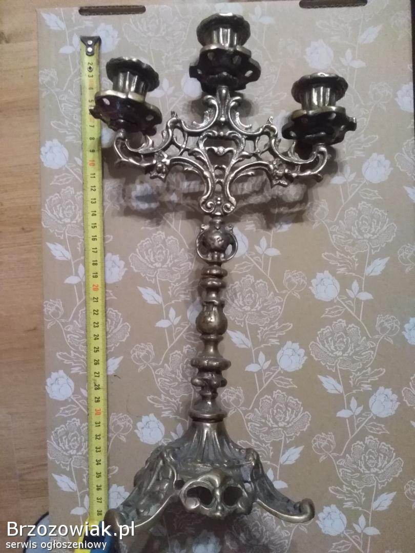 Dzien dobry. Sprzedam swiecznik mosiężny zdobiony. Według przekazu starszych czlonków rodziny pochodzi z konca lat 40-stych ale jest to jedynie przekaz ustny stąd też nie mam pewnosci co do wieku swiecznika. wysokosc ok 35-37 cm. Swiecznik na zdjeciach nie oddaje wrażenia jaki robi na ``żywo``jest na prawde piękny. Swiecznik jest pamiątką ale z przyczyn osobistych zmuszony jestem go sprzedac. Cena 450 zł do niewielkiej negocjacji. Prosze o kontakt powaznie zainteresowane osoby. Na innej aukcji posiadam rówież figurkę chłopca rzekomo z podobnego okresu. Jesli nie wezme okreslonej kwoty niestety nie sprzedam. Lokalizacja 36-016 ok Rzeszowa. Pozdrawiam