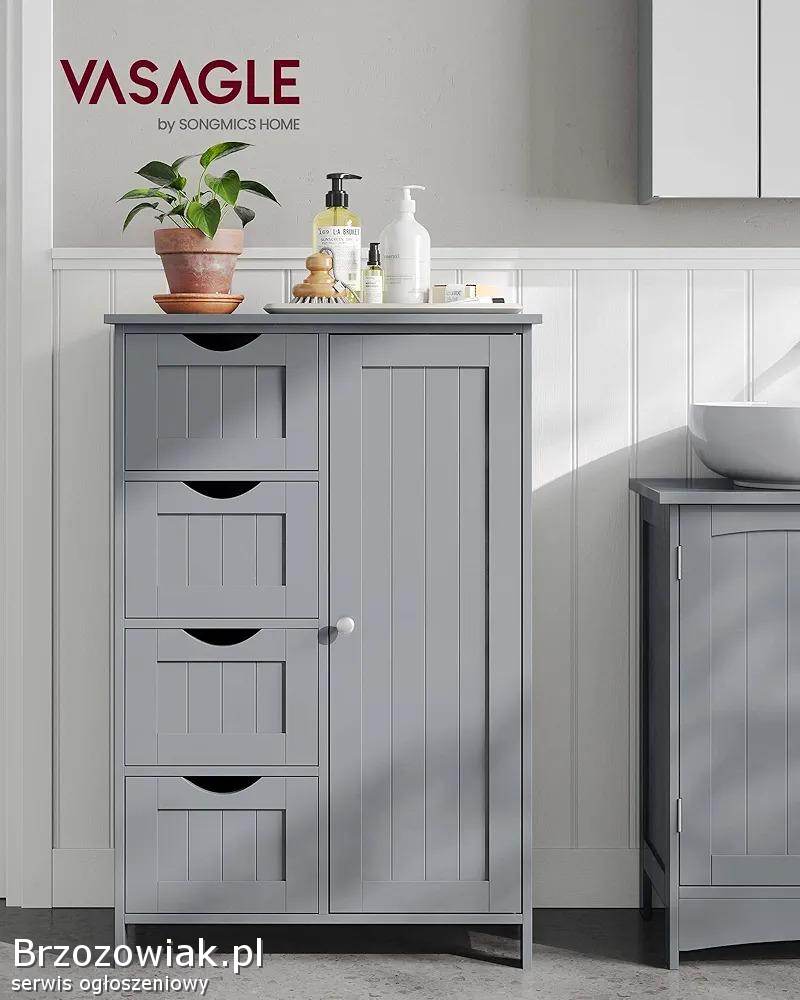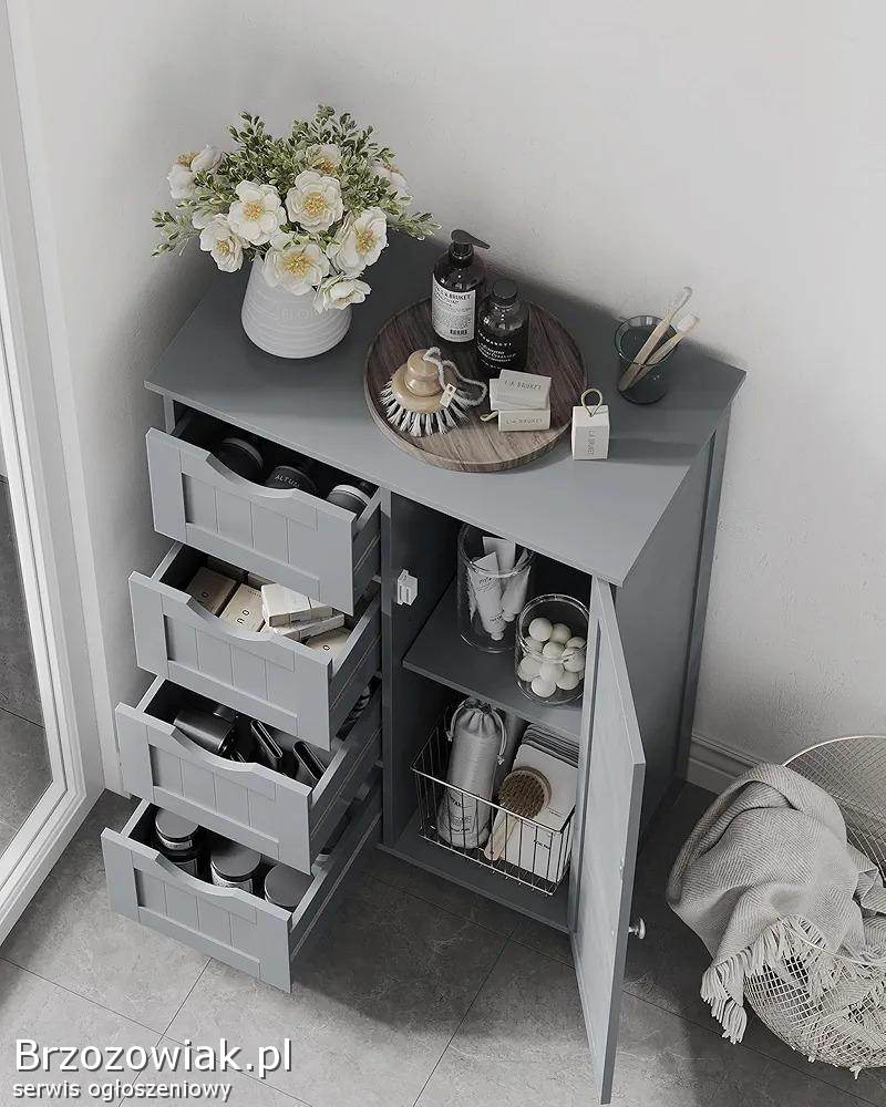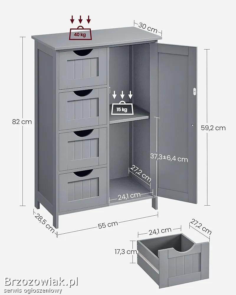 Wąska komoda z 4 szufladami i drzwiami, regulowana półka wymiary 30x55x82 kolor mistyczny szary.