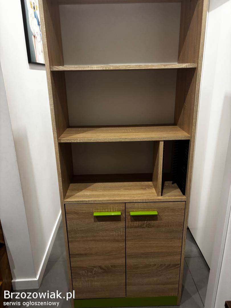 Szafka w kolorze jasnego brązu z zielonym akcentem, idealna do pokoju dziecka czy nastolatka. Posiada drobne ślady użytkowania ( niewielkie ryski), ale nie przeszkadzają one w użytkowaniu. Zapraszam do kontaktu, możliwość negocjacji ceny. Odbiór osobisty.