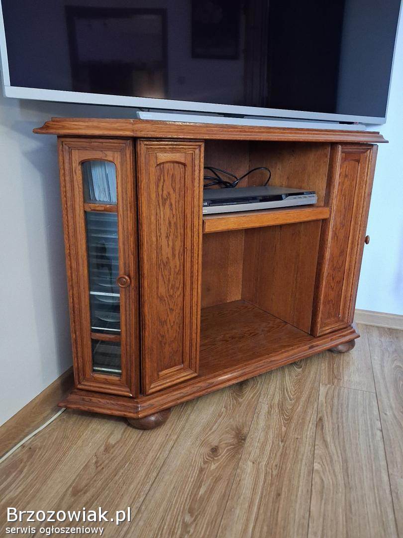 Sprzedam szafkę komodę pod RTV wykonaną z drewna z bardzo delikatnymi śladami użytkowania. Po obu stronach szafki znajdują się drzwiczki z półeczkami na płyty dvd. Wymiary szafki to wys. 74 cm. szer. 114 cm. gł. 65 cm.