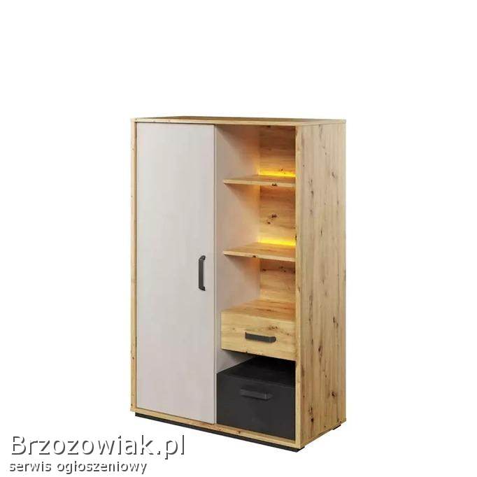 Sprzedam nową, zapakowaną oryginalnie szafkę z serii mebli młodzieżowych QUBIC. Wymiary: szerokość 50, wysokość 138, głębokość 42. Szafka podświetlana, zamówiona z innymi meblami nie zmieściła się w pokoju syna. Cena 280 zł. Odbiór własnym transportem.