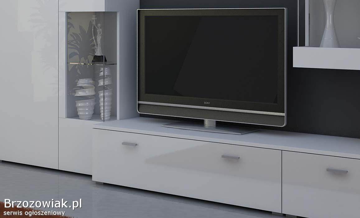 Szafka pod TV biała na wysoki połysk New Wave,