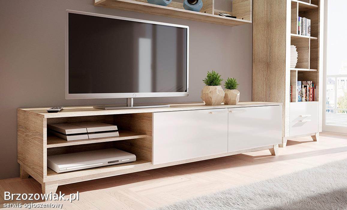 OrzechówkaSzafka pod TV biała na wysoki połysk New Wave, Wytrzymała szafka RTV biała New Wave jest produktem meblarskim, na który warto zwrócić uwagę. Użyte do jego wy
