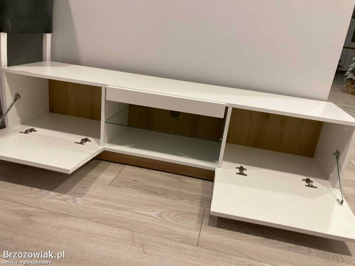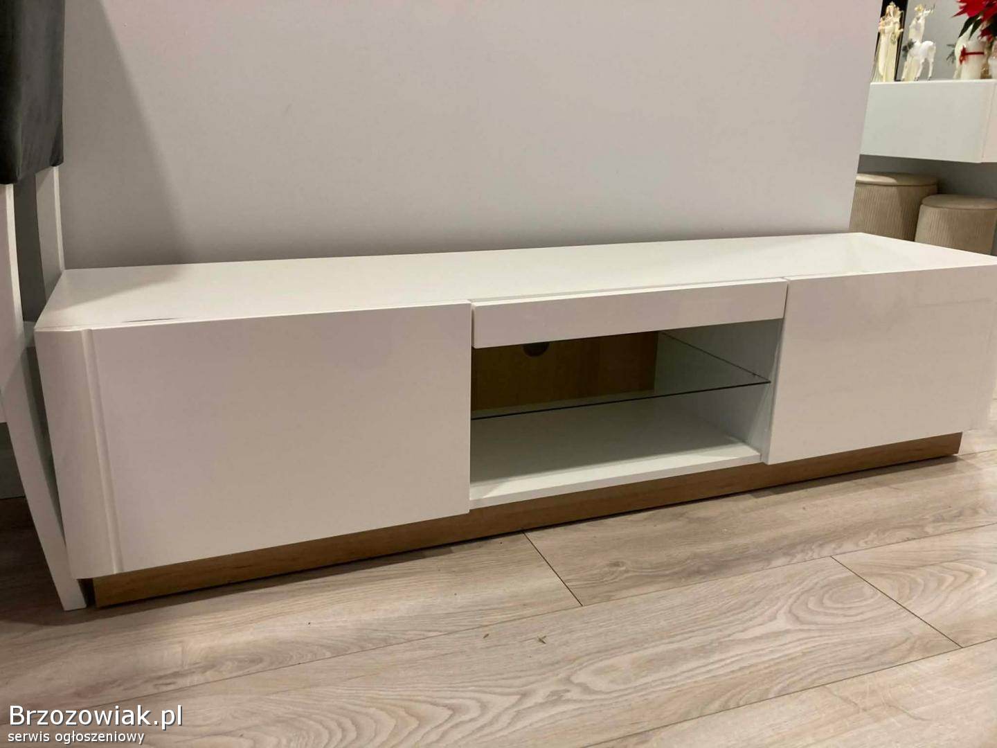 Sprzedam szafkę rtv. Fronty są białe w połysku do tego są dodane elementy w odcieniu dąb riviera. Wymiary: długość 165 cm, wysokość 40 cm. Stan bardzo dobry. Polecam. Sprzedaję również inne meble z tego kompletu.