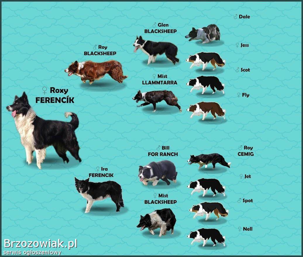 Przedstawiam czwórkę sprawdzonych i przebadanych reproduktorów Border Collie: 1. Bono z hodowli WILLOW LAND (czekoladowo-biały) Waga 18 kg wysokość w kłębie