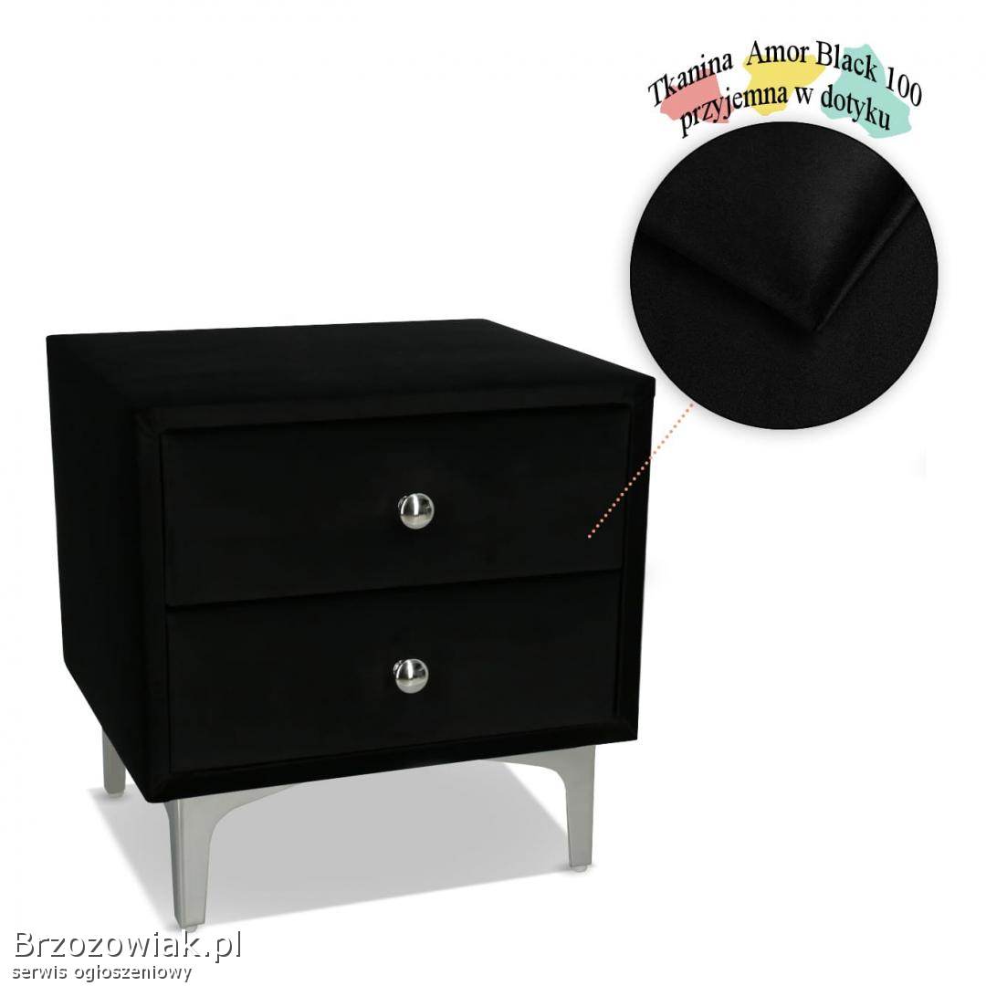 Tapicerowaną szafkę Stella w kolorze czarnym wyposażono w specjalistyczne, metalowe nóżki. Stanowią one nie tylko idealne podparcie mebla. Są także doskonałym sposobem na zapewnienie prawidłowej cyrkulacji powietrza pod szafką. Dodatkowo metalowe nóżki zachowane w stylowej, srebrnej kolorystyce w połączeniu z uchwytami w tym samym odcieniu gwarantują wysoką estetykę mebla. Dzięki zastosowanym elementom szafka sprawi, że otoczenie Twojego łóżka stanie się wyjątkowo eleganckie.