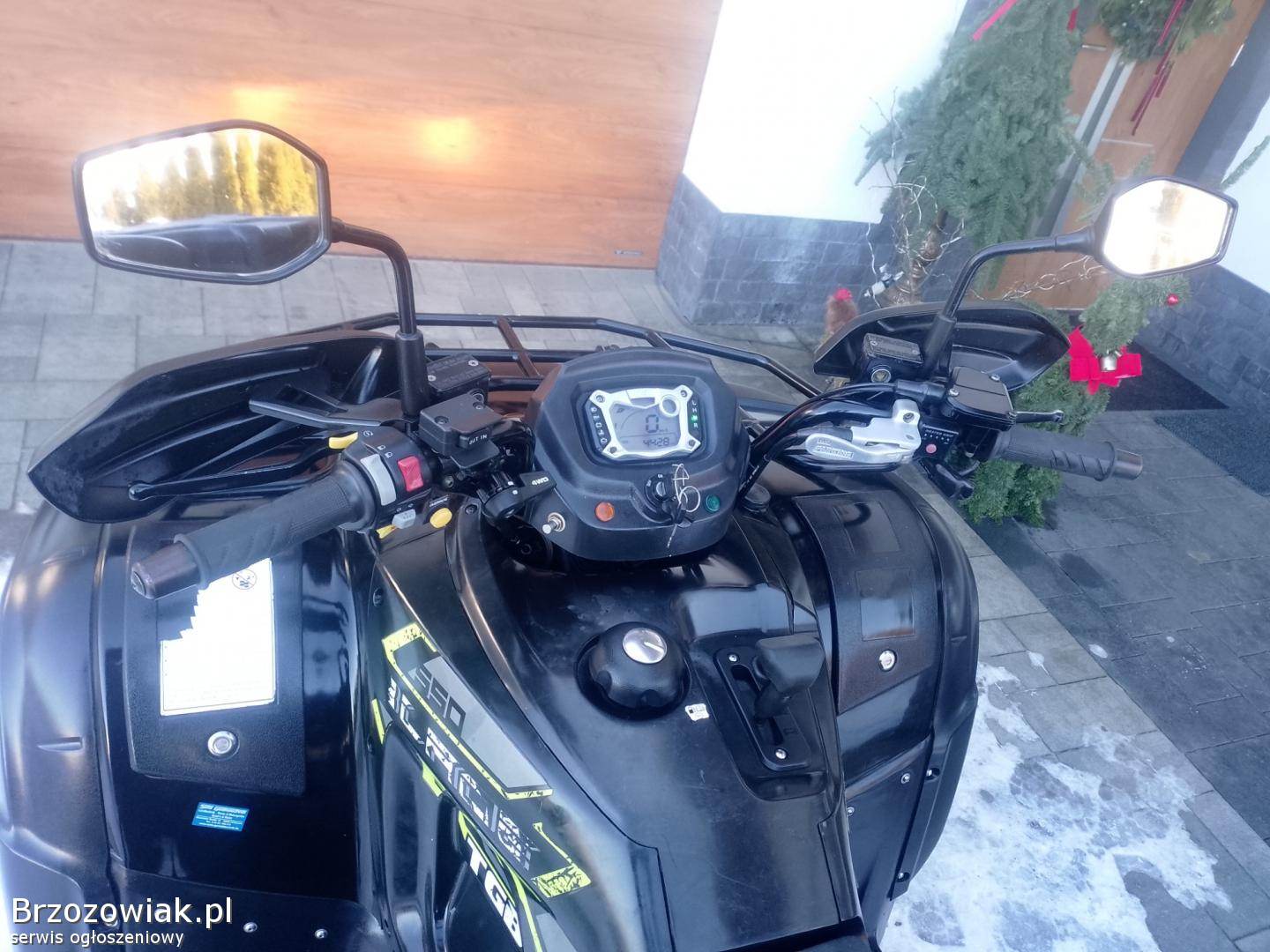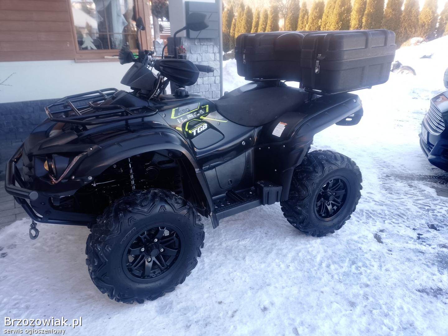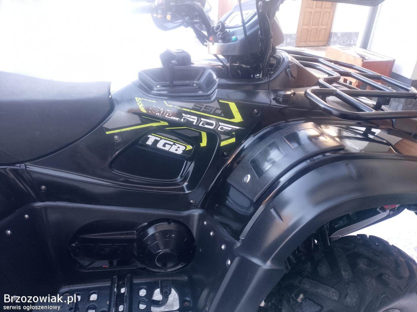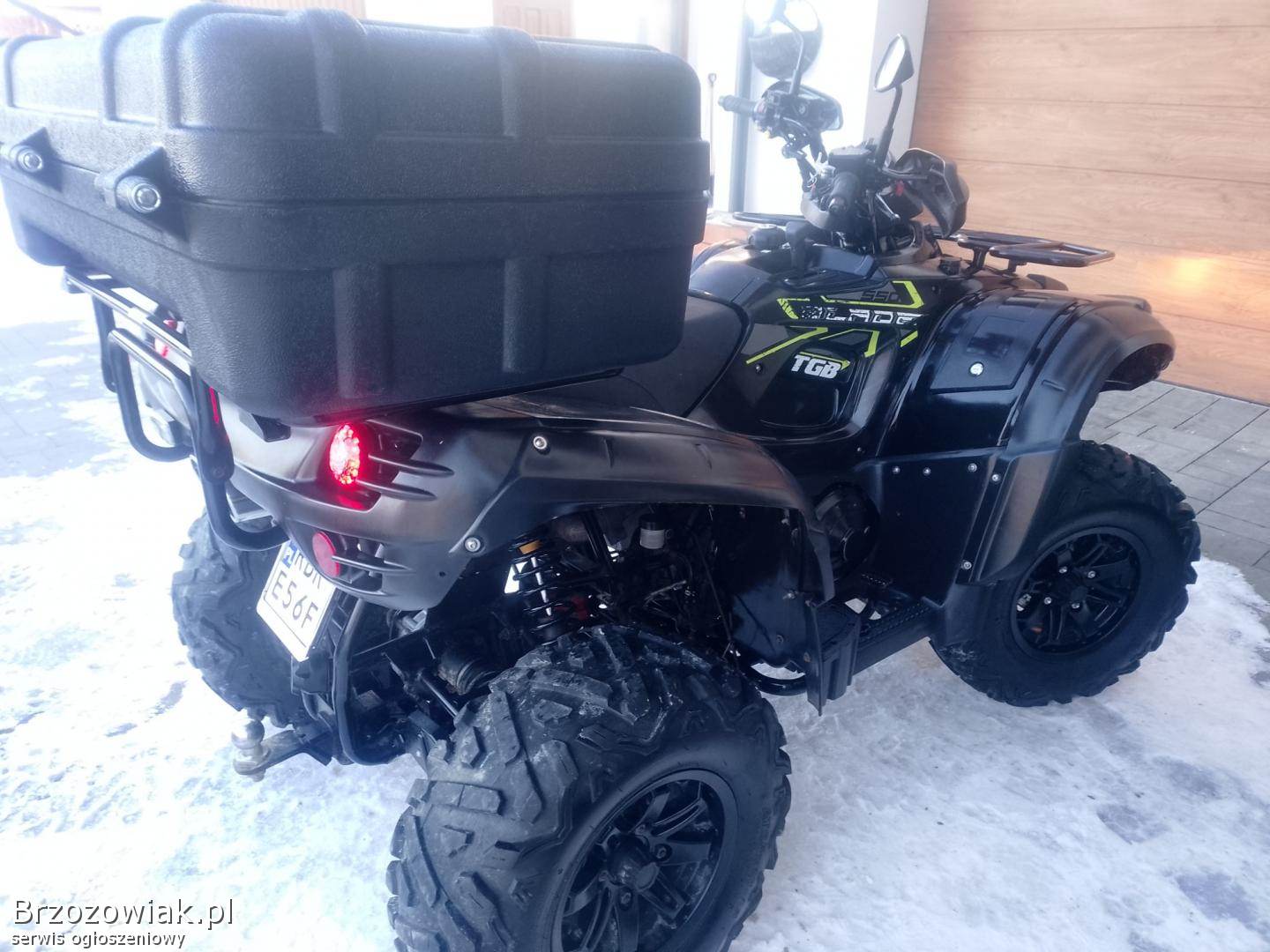 Sprzedam ładnego quada firmy TGB BLADE 550 na wtrysku rok produkcji 2020 zarejestrowany na dwie osoby ubezpieczony nowy akumulator po wymianie oleju w silniku mały przebieg 4400 kl aluminiowe felgi wyciągarka hak gniazdo grzane manetki i kciuk duży kufer osłony dloni