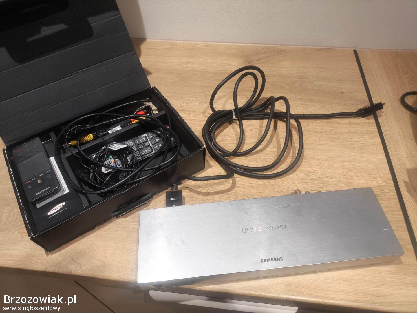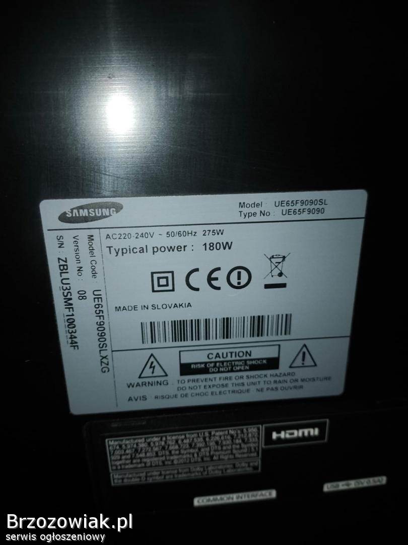 Sprzedam uszkodzony telewizor Samsung UE65F9090SL 65 cali wraz z oryginalnym modułem przyłączeniowym Samsung One Connect Box, okablowanie i pilotem. Telewizor od pewnego czasu po włączeniu wyłączał się przez około 10 minut, następnie jak się rozgrzał działał poprawnie. Niestety ostatnio na matrycy pojawiły się paski i nie wyświetla już obrazu.