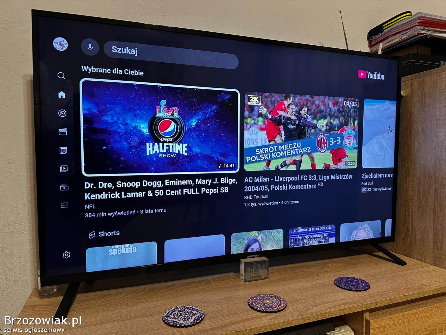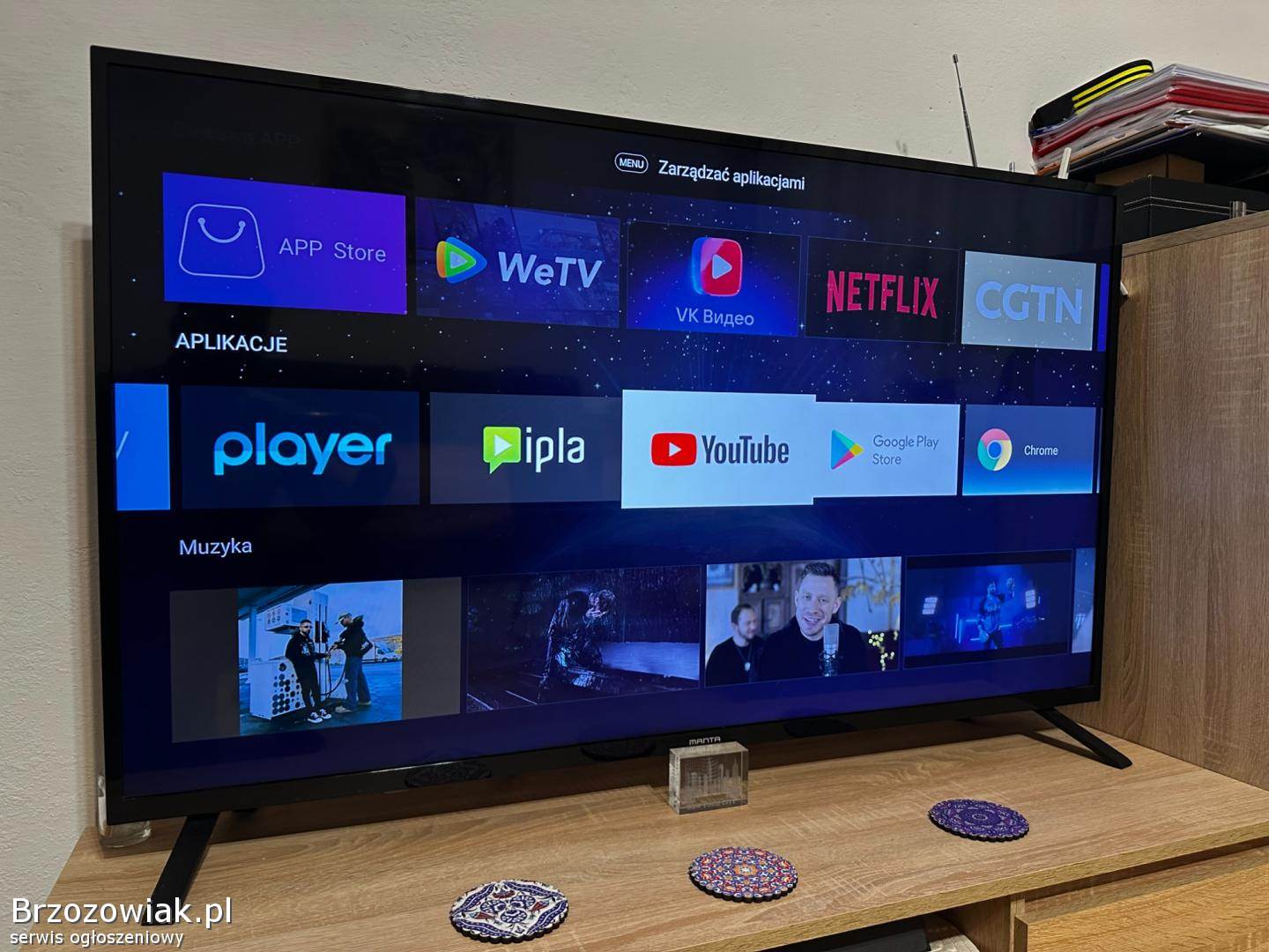 Telewizor Manta Smart TV 50 cali w idealnym stanie. Wbudowany dvbt, odbiera telewizję naziemną z anteny pokojowej.