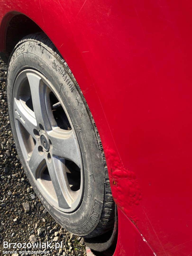 Z blacharskich rzeczy to zmatowiały kolor lewych przednich i tylnich drzwi, w niektórych miejscach jest korozja, są parchy w niektórych miejscach, z rzeczy mechanicznych tylni amortyzator i sprężyna które mam kupione daje do auta gratis, skrzynia wybija bieg wsteczny i czasami szarpie podczas ruszania lecz samochód jeździ normalnie, manetki kierunkowskazów, założone opony zimowe, opłaty OC 16. 12. 25, przegląd 09. 2026