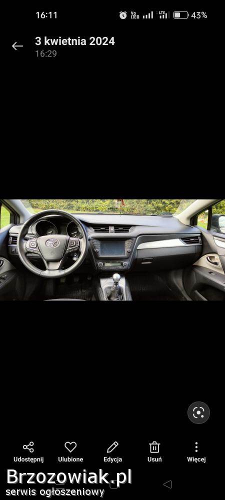Toyota Avensis manualna 6 stopniowa skrzynia biegów opony letnie i zimowe. W aucie została podniesiona moc do 177 km w V-Tuning Leżajsk. Auto serwisowe na bieżąco co 10 tys. Więcej informacji udzielę telefonicznie 795040873