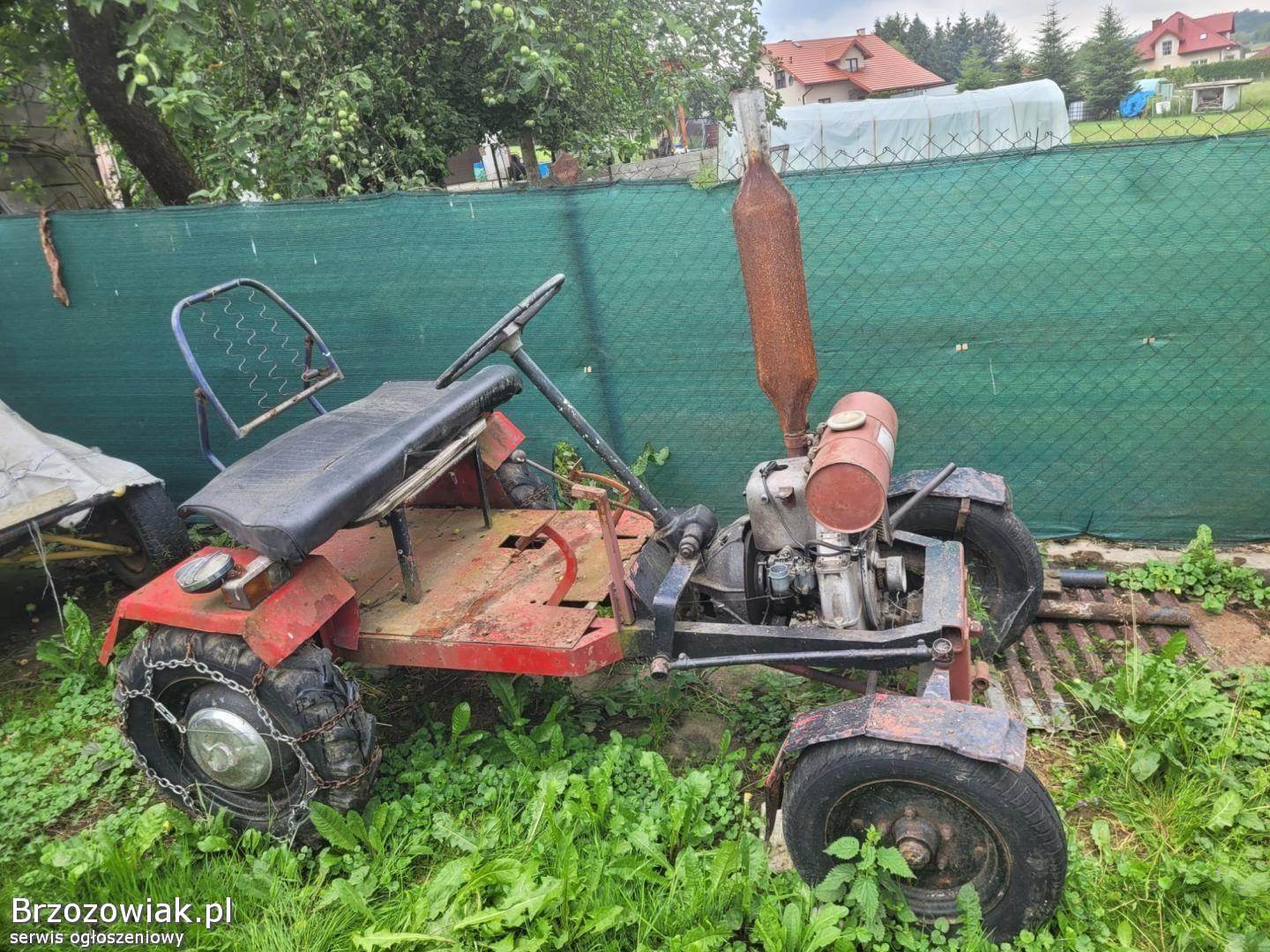 Sprzedam traktorek typu SAM. Solidna rama. Silnik dzik, dwie skrzynie i most z żuka. Nie pali. Jest też plug do odsniezania dorobiony i lancuchy na kołach