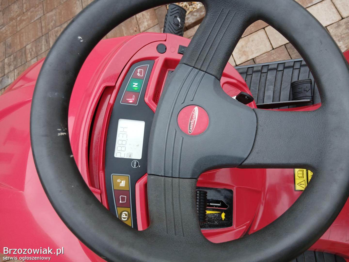 Przedmiotem ogłoszenia jest zadbany duży Traktorek Kosiarka znanej i solidnej Marki Castel garden. Elektroniczny wyswietlacz tylko 290mth. Traktorek wyposażony w hydrostatyczną skrzynię biegów co umożliwia płynną jazdę, bardzo mocny, jednocylindrowy 17, 5 konny silnik Briggs pompa oleju, pojemny kosz, załączanie noży - elektromagnes, opcja koszenia na biegu wstecznym, światła. Traktorek ma kosisko jak nowe. Nowe paski. Traktorek Uwaga z usterką tj. Nie pali z kluczyka. Pali na ostro. Poza usterka w pełni sprawny. Cena rynkowa takiego to 8 tys. Nie odpowiadam na propozycje SMS.