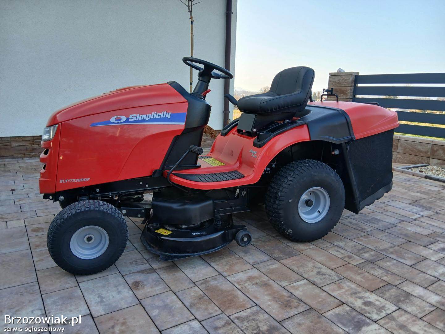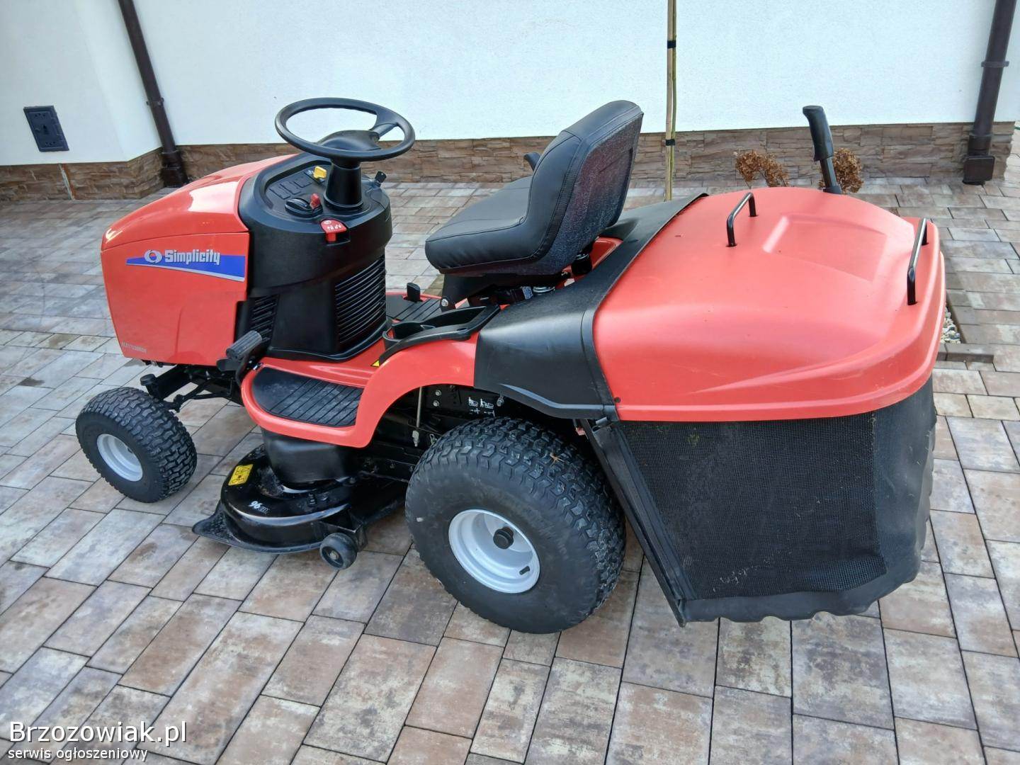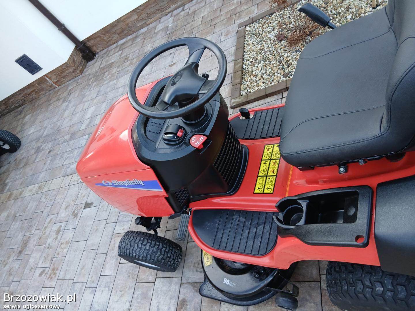 Przedmiotem ogłoszenia jest zadbany duży o bardzo solidnej konstrukcji Traktorek Kosiarka znanej i solidnej Marki Simplisity Traktorek wyposażony w hydrostatyczną skrzynię biegów co umożliwia płynną jazdę, bardzo mocny, jednocylindrowy 17. 5 konny silnik z pompa oleju, pojemny kosz, załączanie noży - elektromagnes, opcja koszenia na biegu wstecznym, światła.