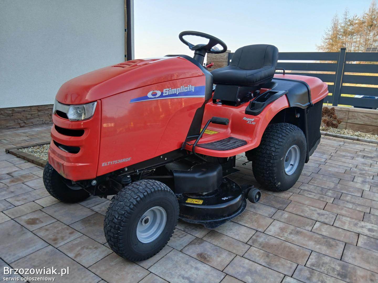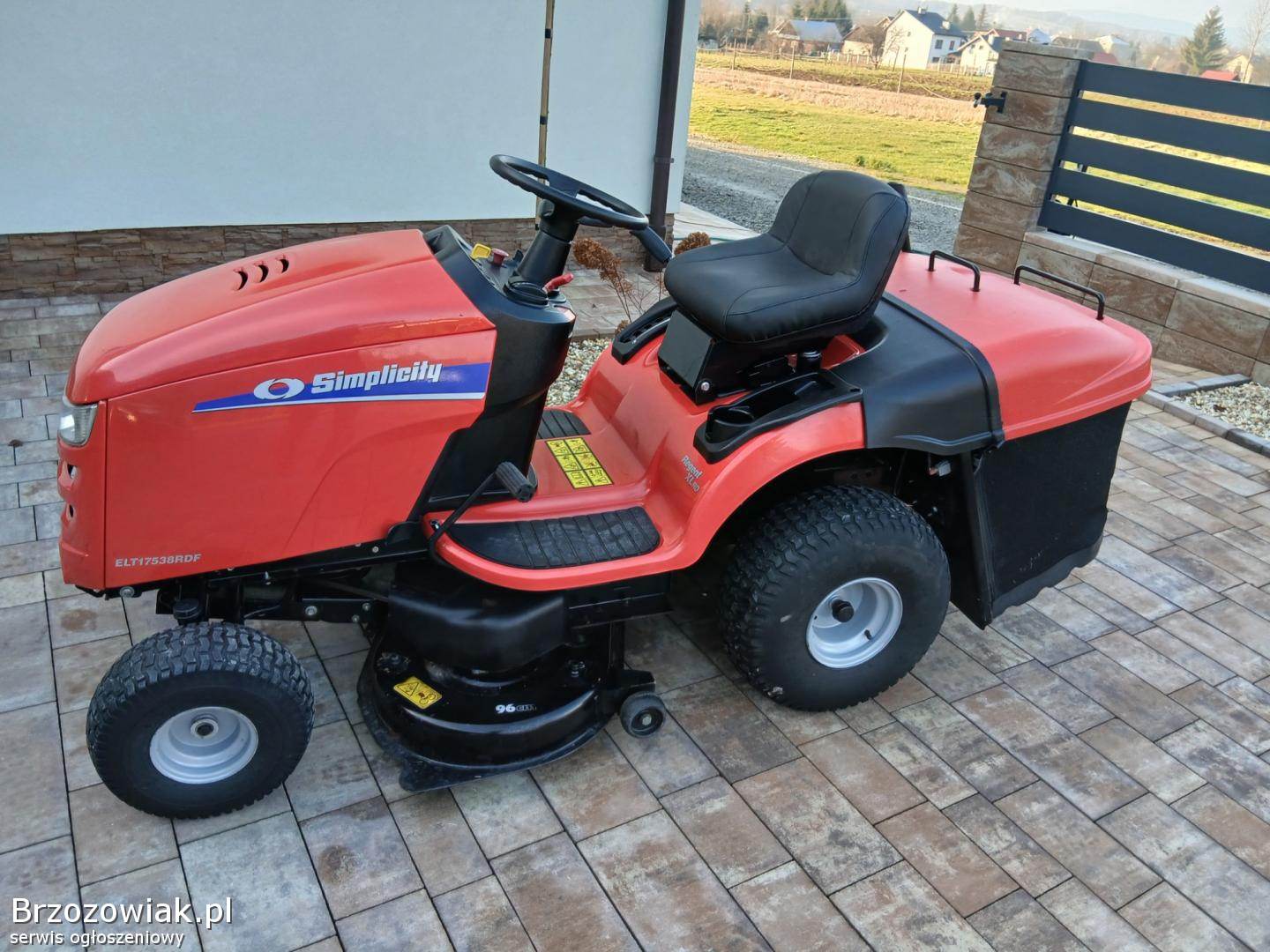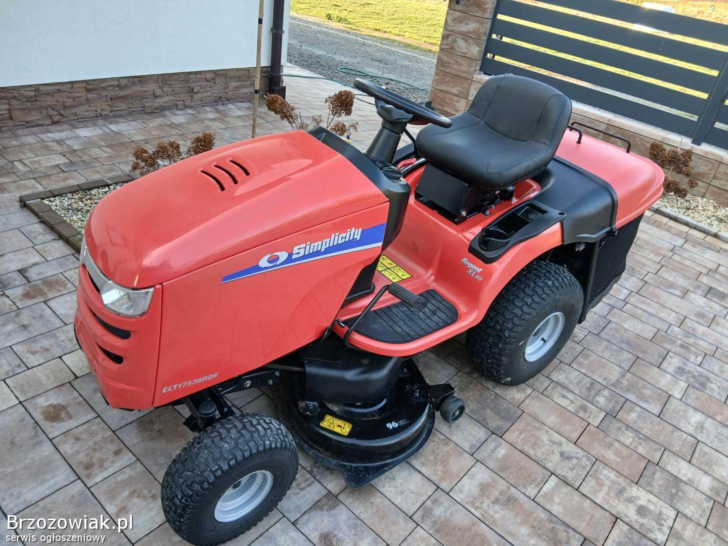Przedmiotem ogłoszenia jest zadbany duży o bardzo solidnej konstrukcji Traktorek Kosiarka znanej i solidnej Marki Simplisity Traktorek wyposażony w hydrostatyczną skrzynię biegów co umożliwia płynną jazdę, bardzo mocny, jednocylindrowy 17. 5 konny silnik z pompa oleju, pojemny kosz, załączanie noży - elektromagnes, opcja koszenia na biegu wstecznym, światła.